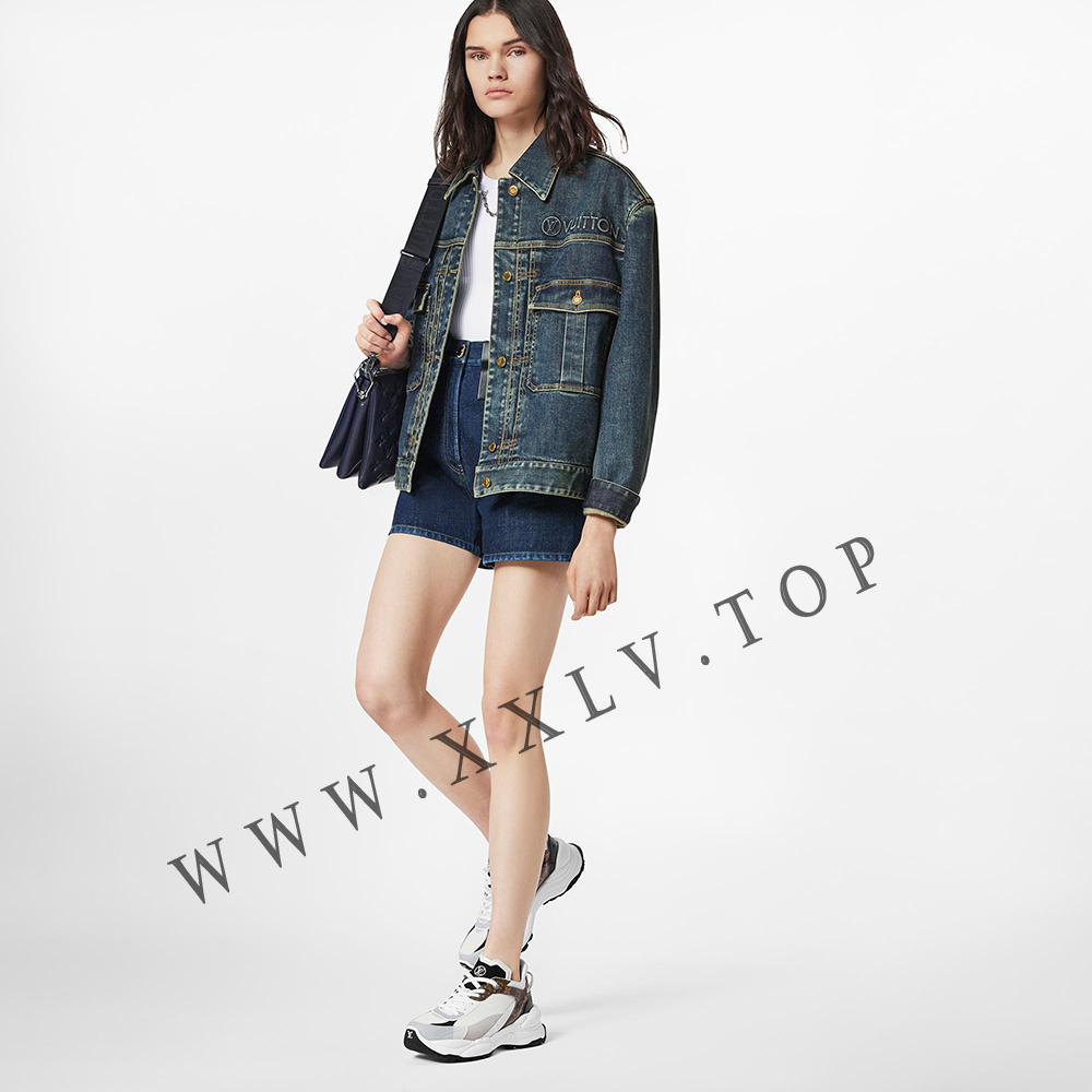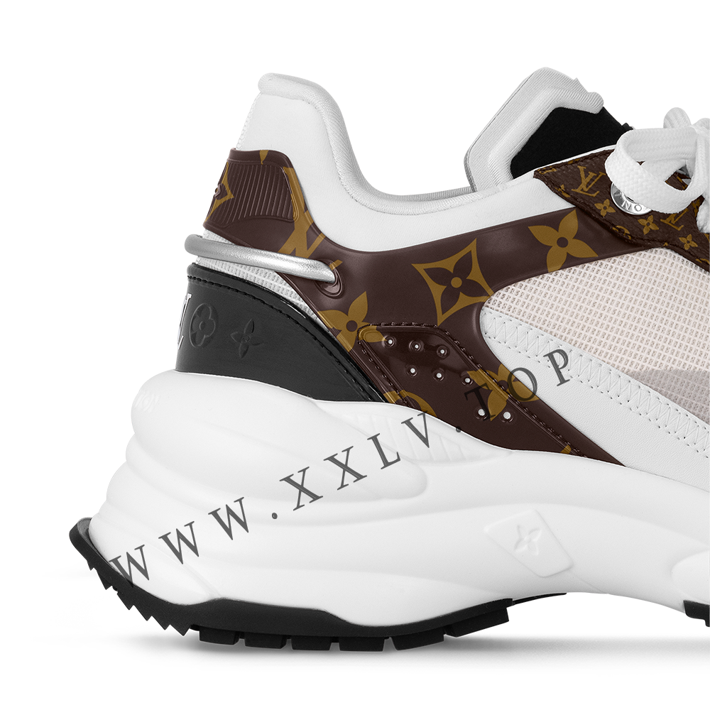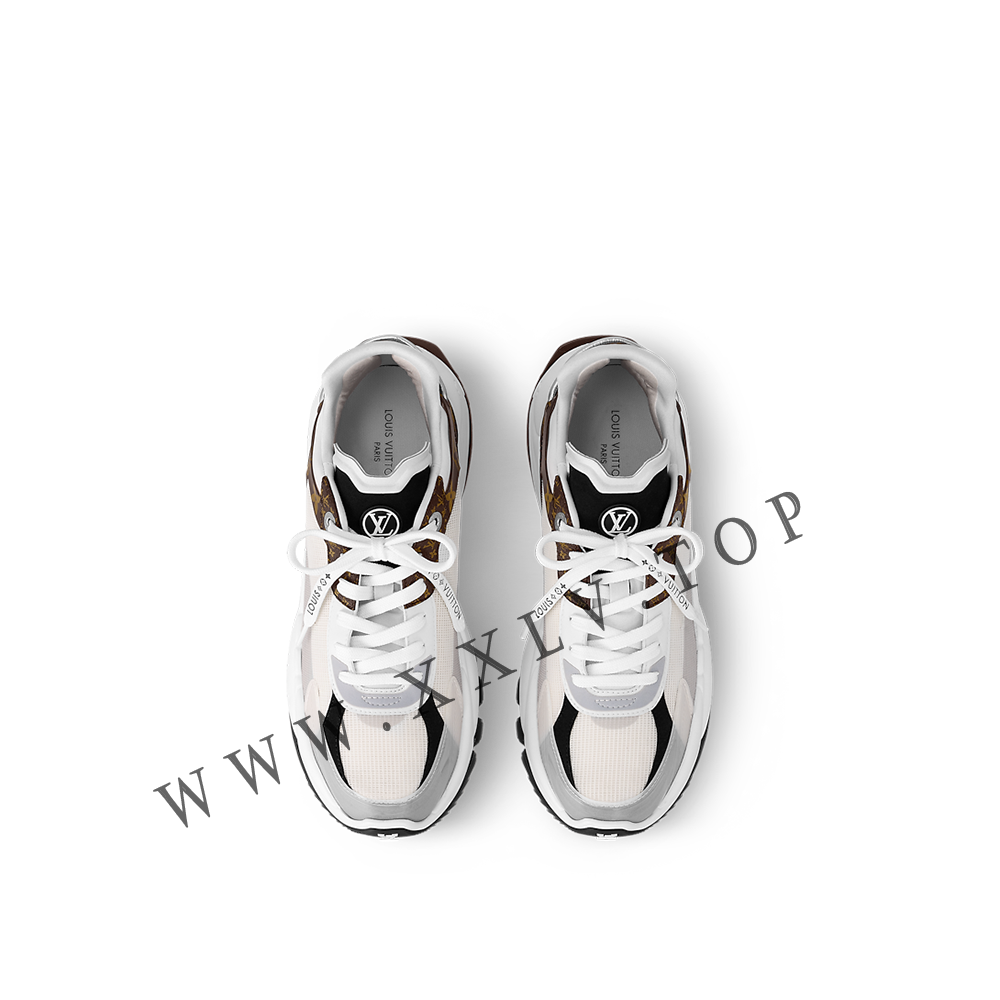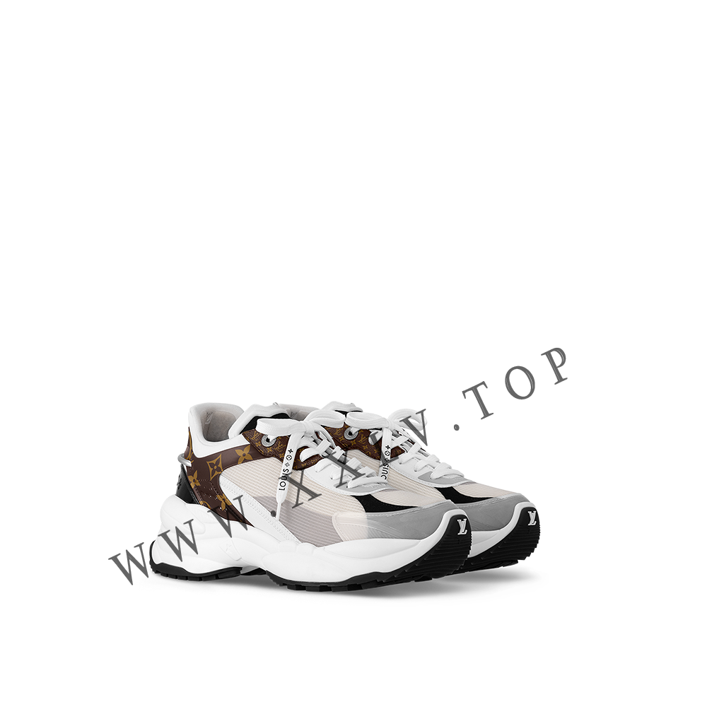 The Run 55 sneaker comes in a mix of technical materials, which are overlaid on the elaborately constructed upper. Monogram-canvas trim complements this design, which is notable for its numerous signature details, including the LV Circle logo on the tongue. It is finished with a lifted rubber outsole for optimum bounce and comfort.