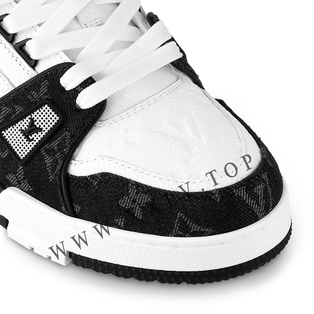 For the first time, the cult LV Trainer sneaker, a staple of the men’s collection, is revisited for women in calf leather and Monogram denim. This classic design, created by Virgil Abloh, references vintage basketball sneakers. It features numerous signature details, including the LV Initials on the tongue and side, and Monogram Flowers on the outsole.