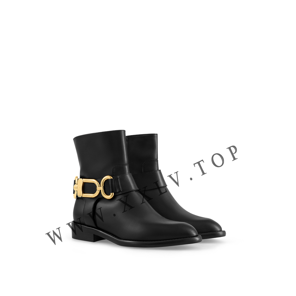 The Westside flat ankle boot is an equestrian-inspired style crafted from fine calf leather. This authentic design is complemented by an oversized snap hook in gold-tone metal, which is engraved with the Louis Vuitton signature. The leather outsole integrates a rubber insert for optimum comfort and durability.
