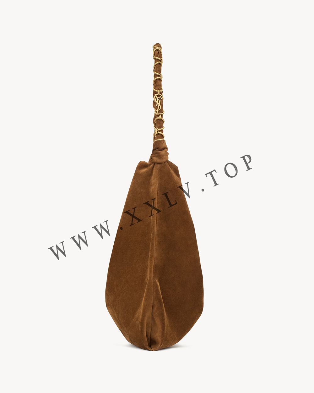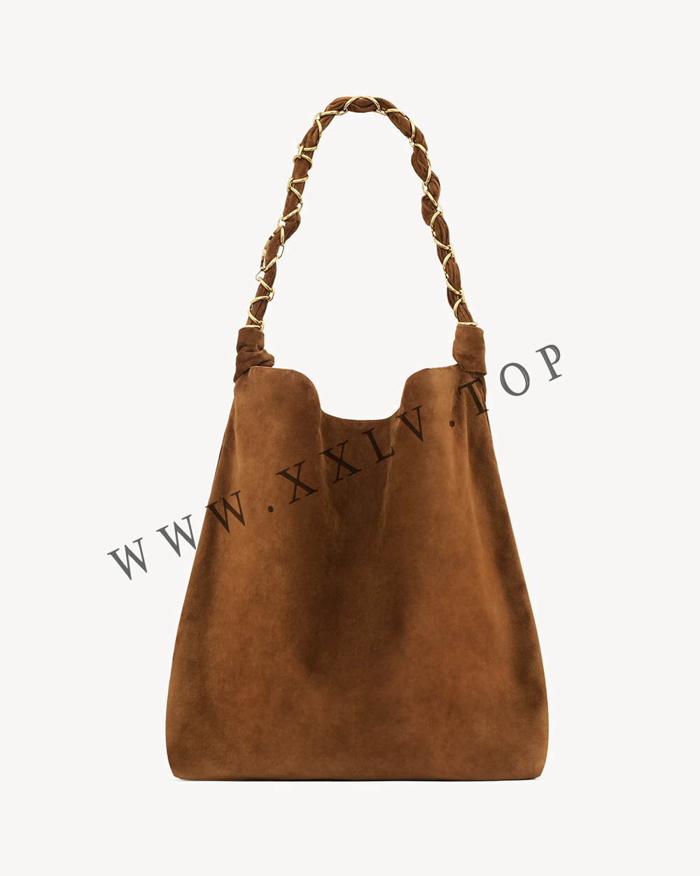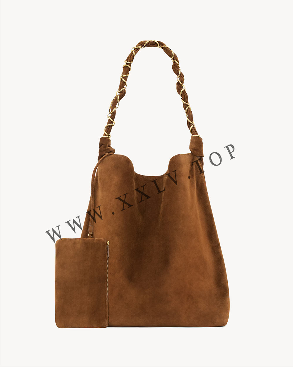 Spacious bag in suede featuring a woven CASSANDRE jewelry chain.