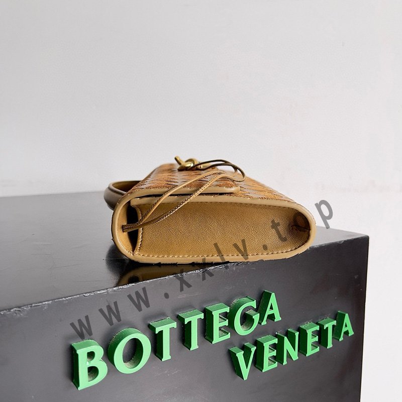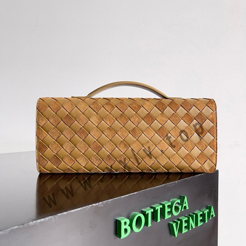 Top handle clutch in supple Intrecciato leather with signature knot closure.