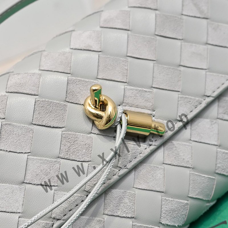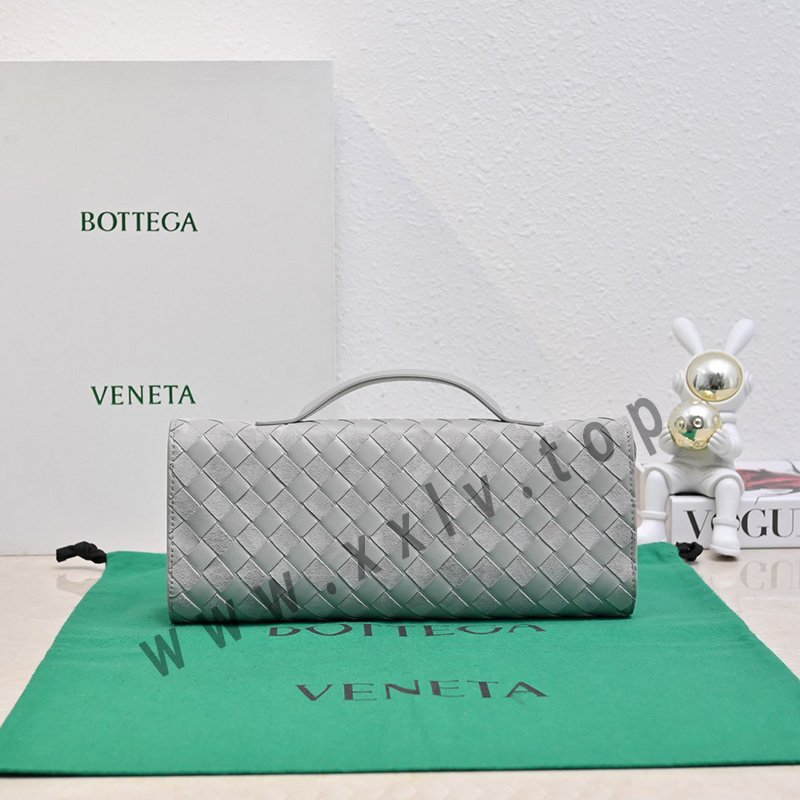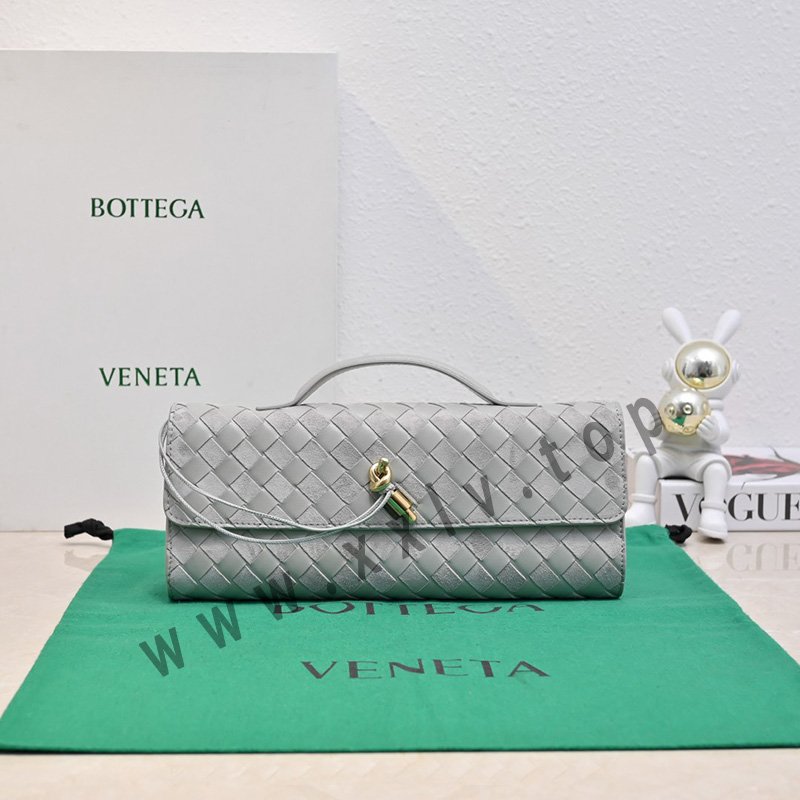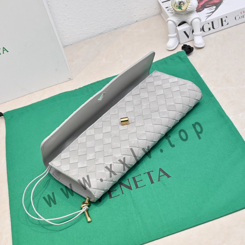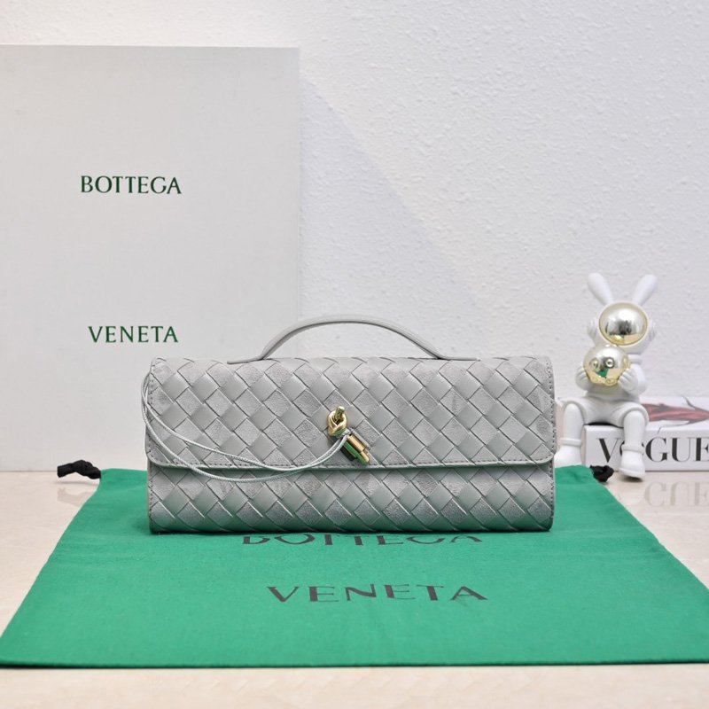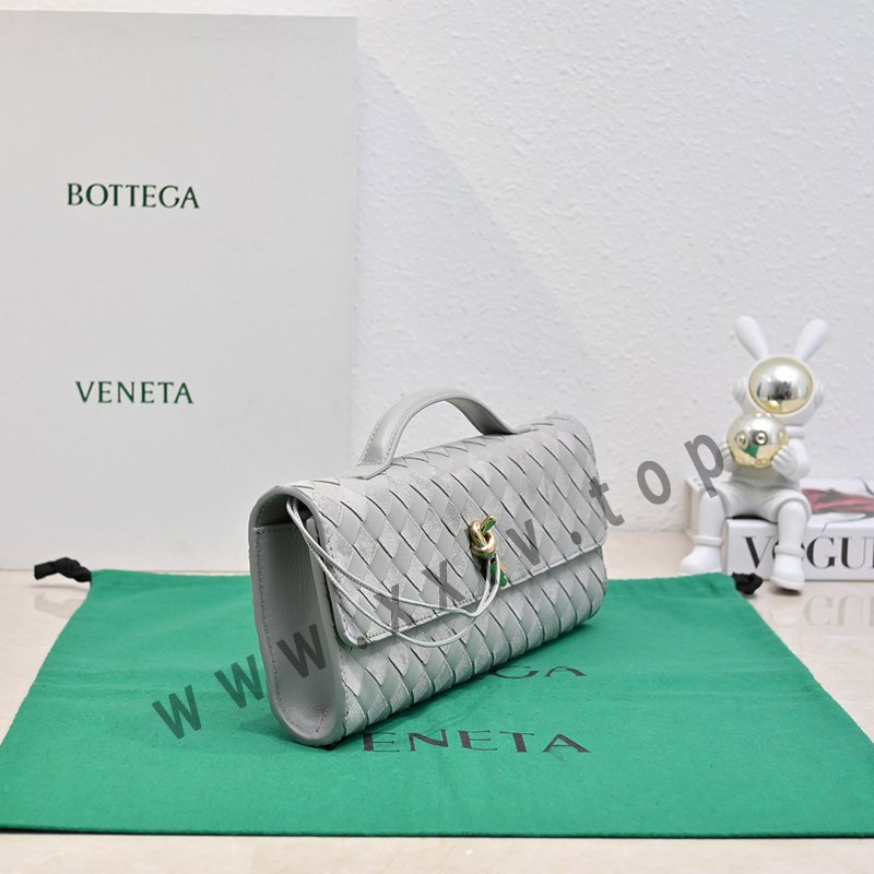 Top handle clutch in supple Intrecciato leather with signature knot closure.