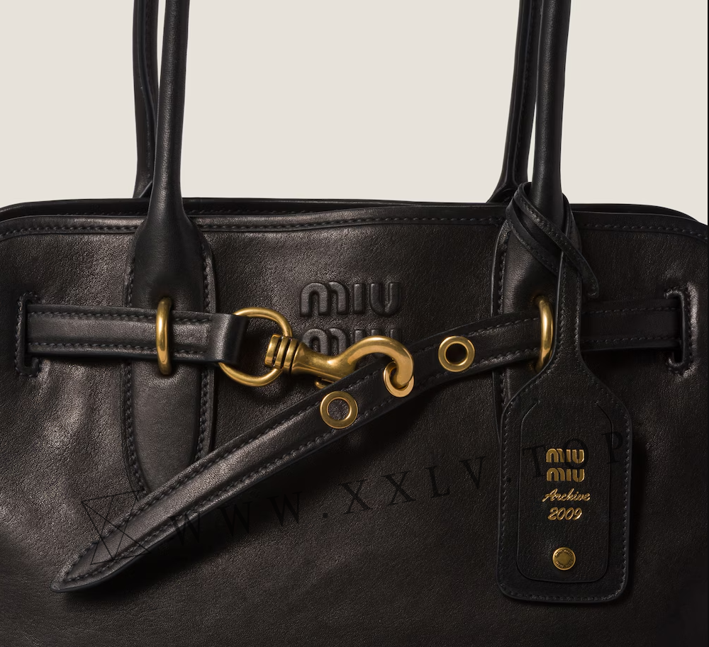 The Aventure top-handle bag, recovered from the Miu Miu archives, has been reinterpreted in terms of a lighter structure and attitude, creating a classic style with timeless charm. The embossed lettering logo completes the design with an iconic note.