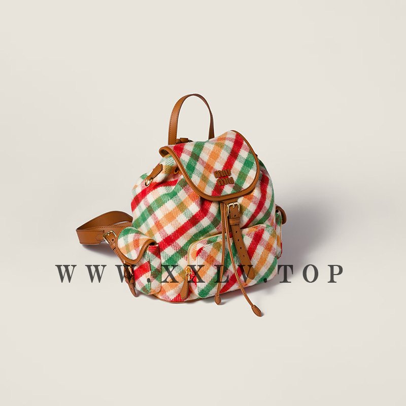 Vintage references and elegant contemporary functionality define the style of the Miu Miu backpack, embellished with a multi-pocket design, leather trim, and the refined texture of corduroy.