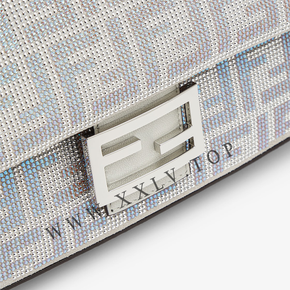 Made of suede and entirely covered in small crystals and multi-faceted studs that create the iconic FF motif all over with an iridescent effect.