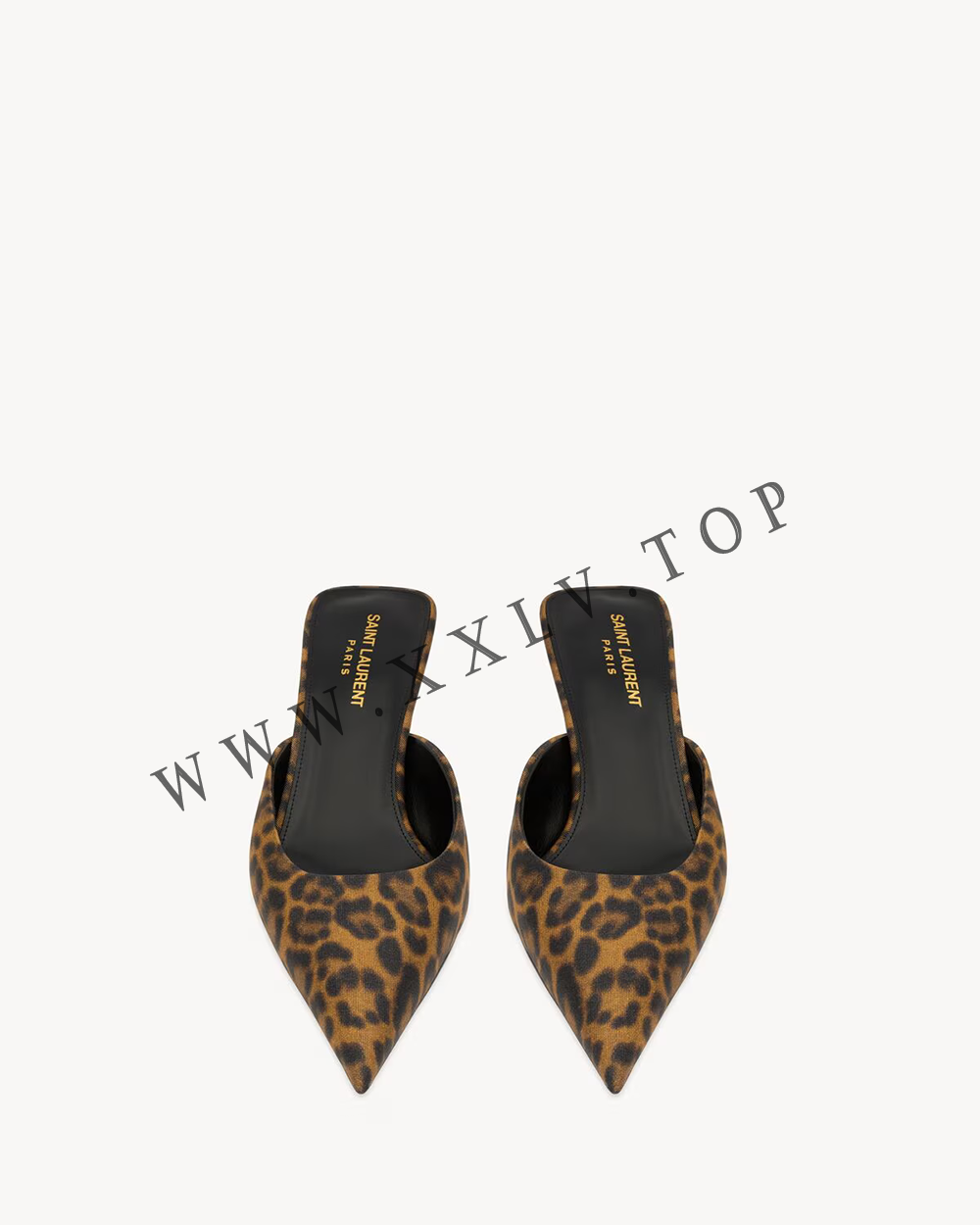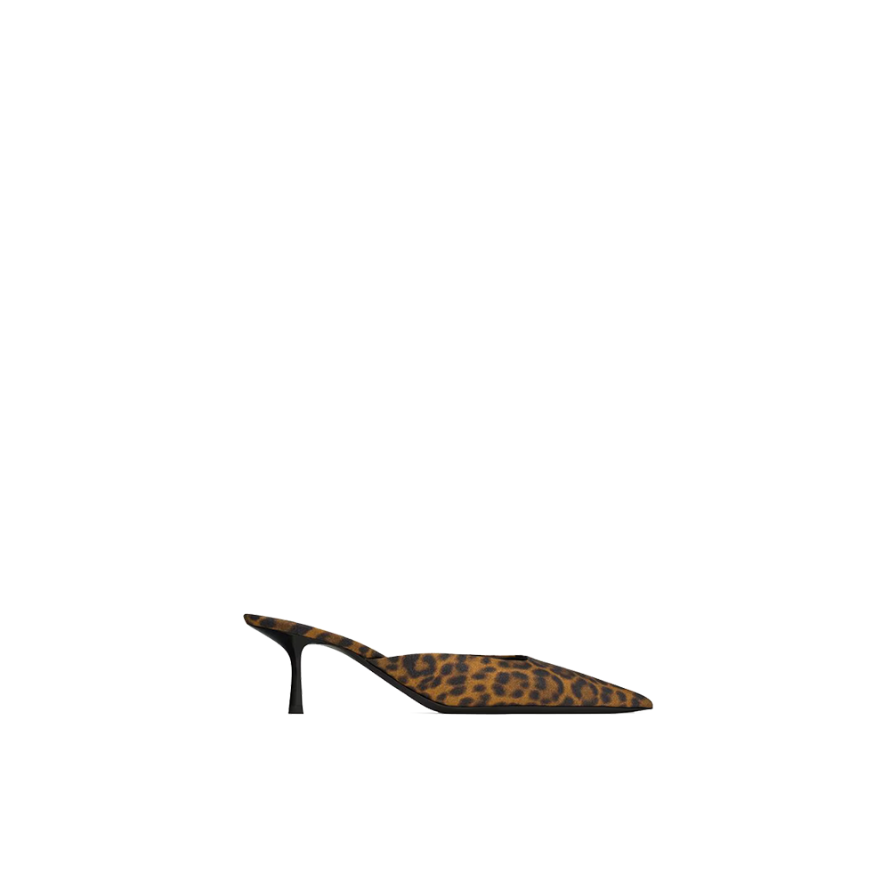 stiletto mules with an elongated pointed toe, kitten heel and low-cut vamp.
