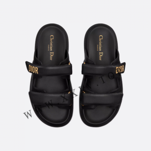 The black lambskin Dioract slide has a modern silhouette. The style features an anatomically shaped sole made with an ultra lightweight and comfortable leather. Scratch bands further enhanced by a gold-finish metal ‘DIOR’ signature on the upper band complete the design. The slide will lend a contemporary touch to any look.