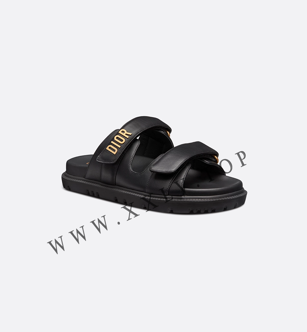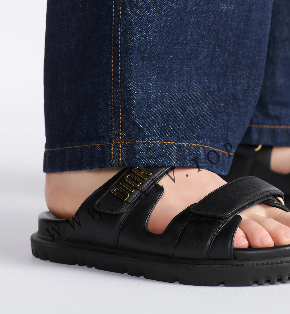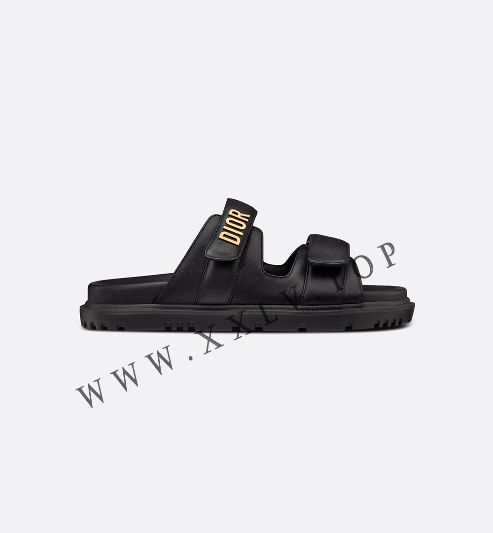 The black lambskin Dioract slide has a modern silhouette. The style features an anatomically shaped sole made with an ultra lightweight and comfortable leather. Scratch bands further enhanced by a gold-finish metal ‘DIOR’ signature on the upper band complete the design. The slide will lend a contemporary touch to any look.