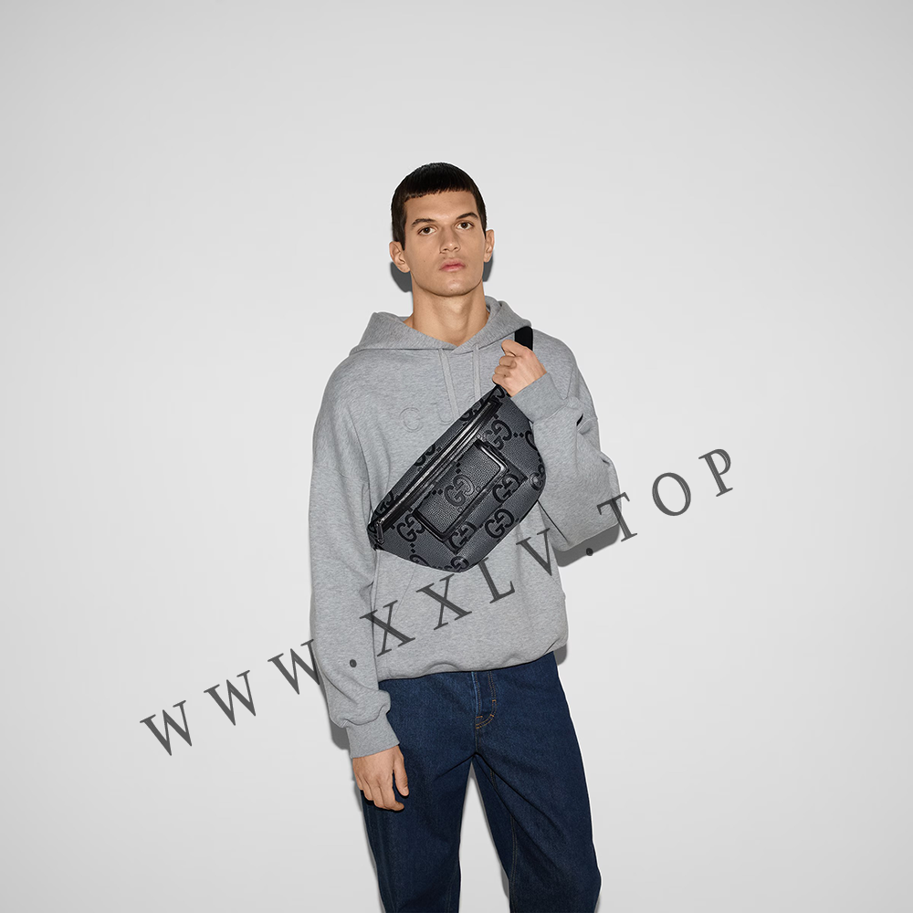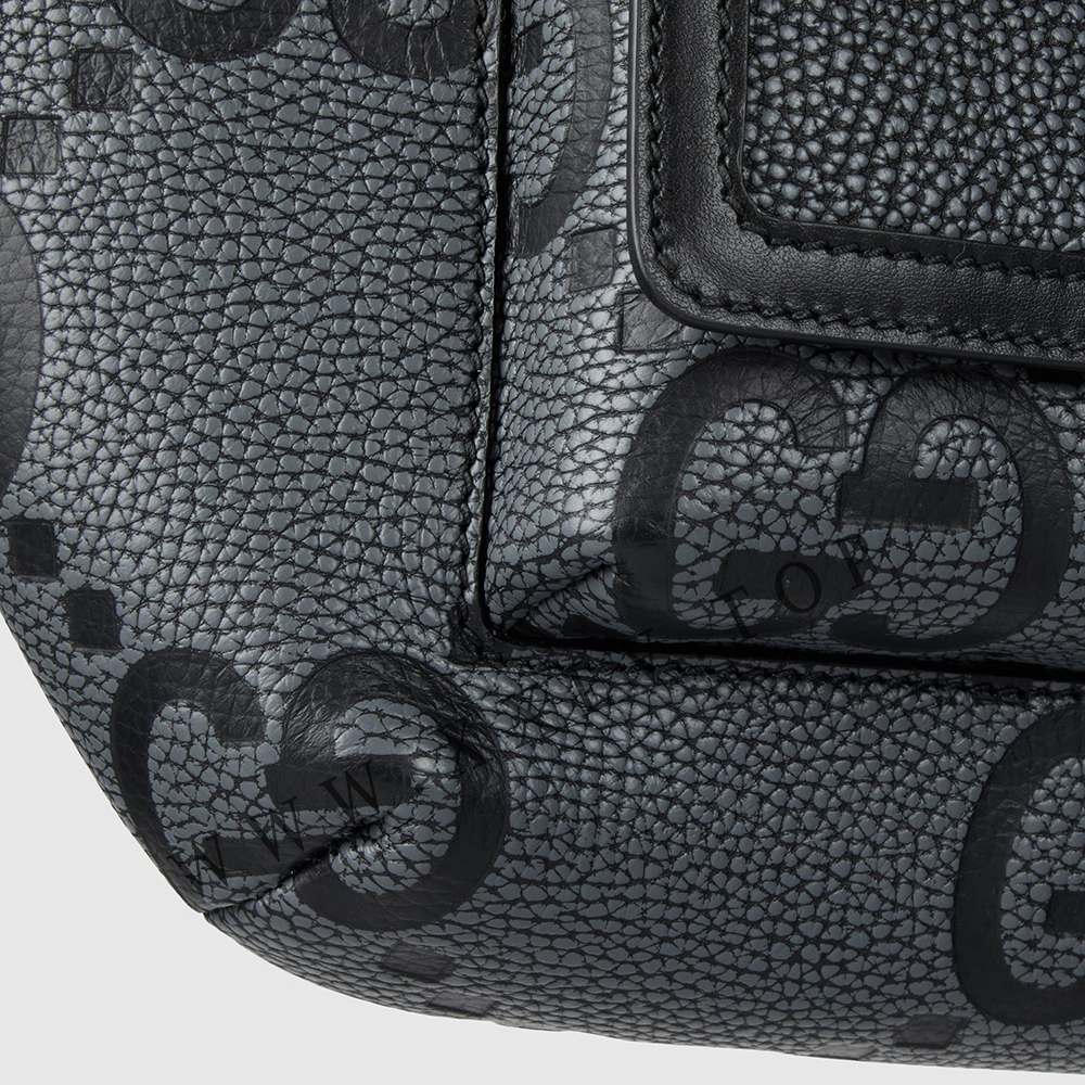 The all-black jumbo GG design returns for Pre-Fall 2023 on a selection of leather luggage pieces. A reinterpretation of Guccio Gucci’s initials, the motif is an evergreen of the House that appears prominently in maxi size for an eye-catching logo feel. This belt bag in the emblematic leather can be worn cross-body for multiple ways to wear.