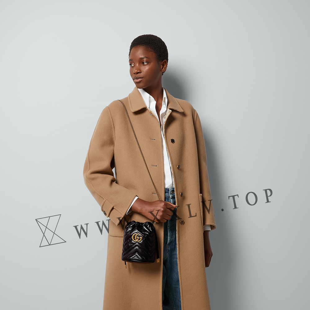 A mini bucket bag presented in white matelassé leather with a heart detail on the back. The GG Marmont collection is defined by the emblematic Double G hardware—a contemporary take on a Gucci archival belt buckle from the ’70s that has become a hallmark of the House. Completed by a gold-toned chain strap, the dynamic shape can be worn in multiple ways.