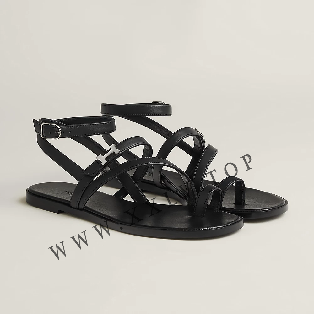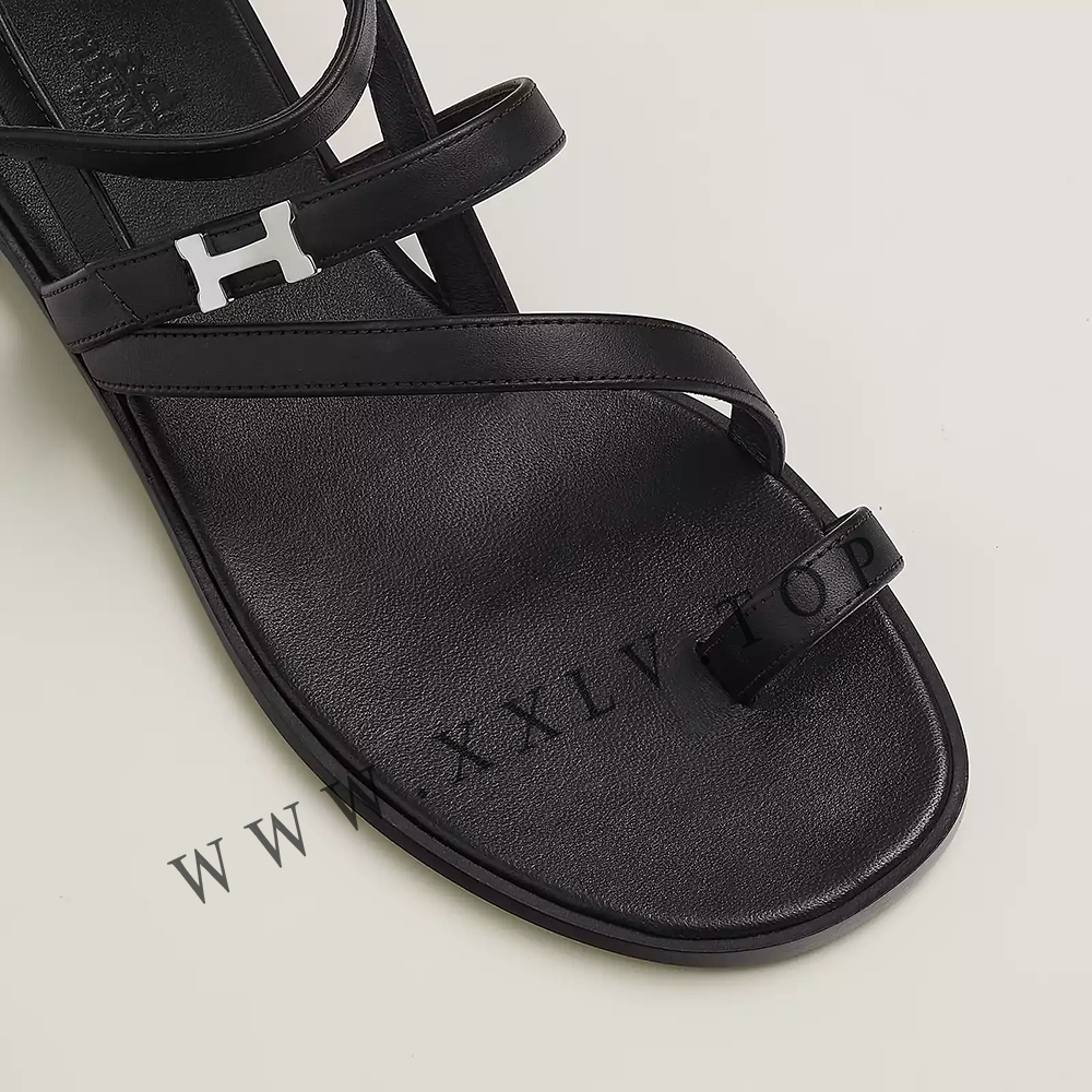Sandal in calfskin with miniature Paris buckle.