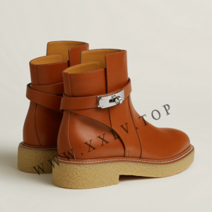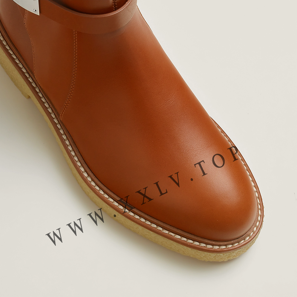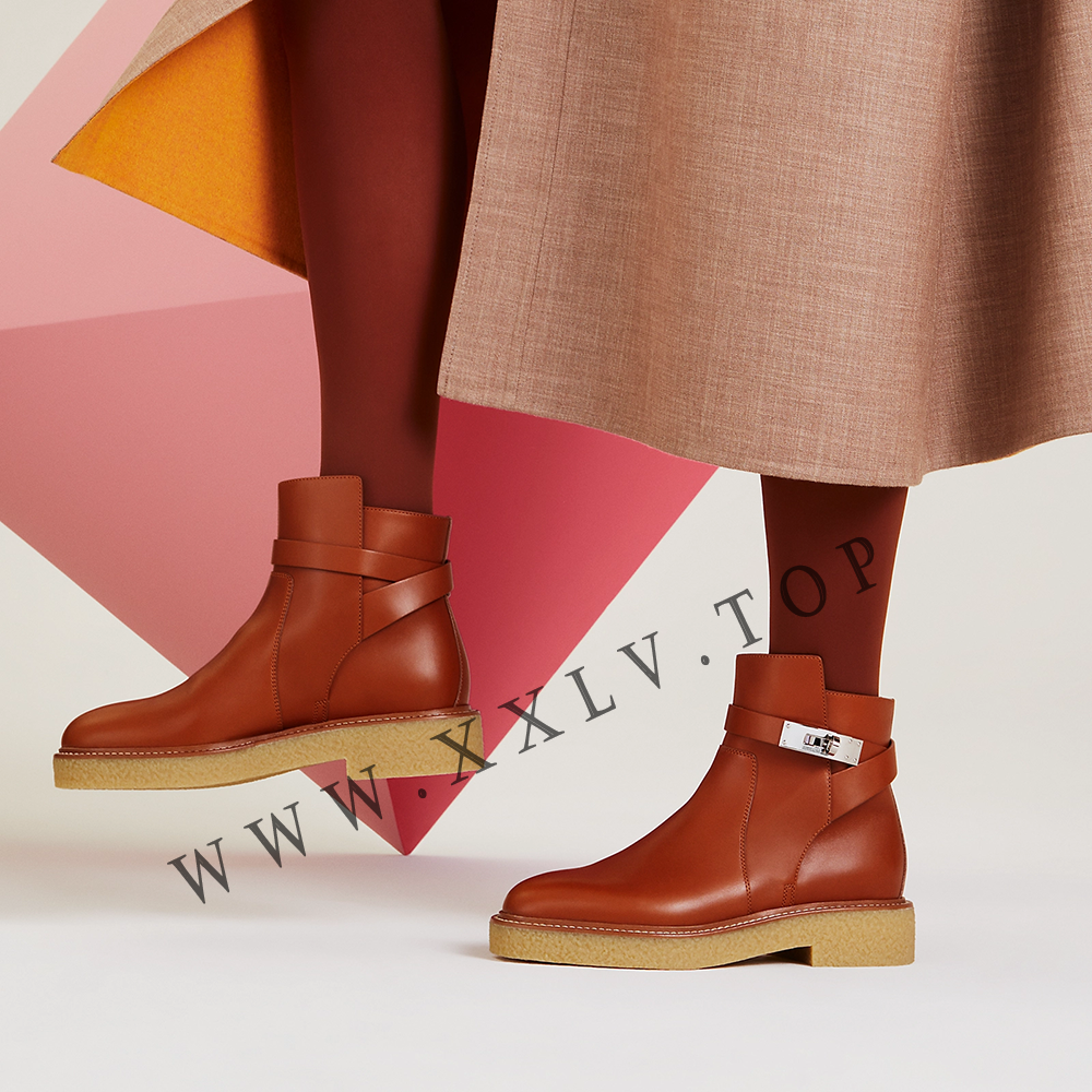 Ankle boot in Heritage calfskin with functional palladium-plated Kelly buckle and rubber sole with crepe effect.