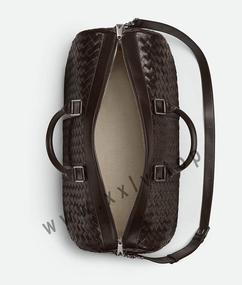 Duffle bag in Intrecciato leather with adjustable and detachable strap.