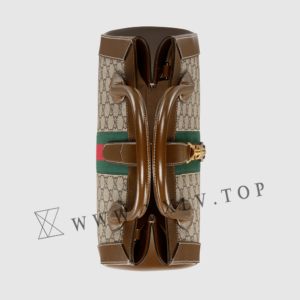 The Gucci handbags selection is enriched with a tote bag with detachable shoulder strap. Presented in monogram canvas, the medium-sized style is defined by the emblematic piston closure. The House Web enhances the style’s logo feel.