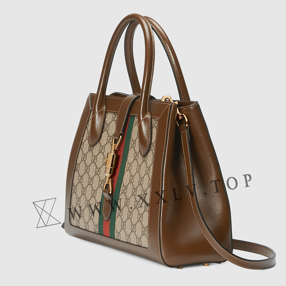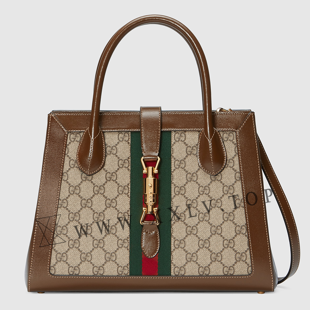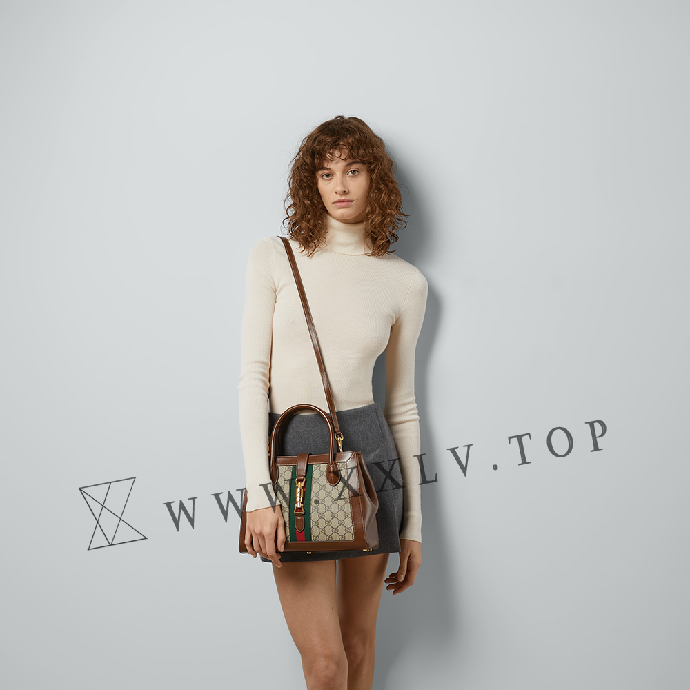The Gucci handbags selection is enriched with a tote bag with detachable shoulder strap. Presented in monogram canvas, the medium-sized style is defined by the emblematic piston closure. The House Web enhances the style’s logo feel.