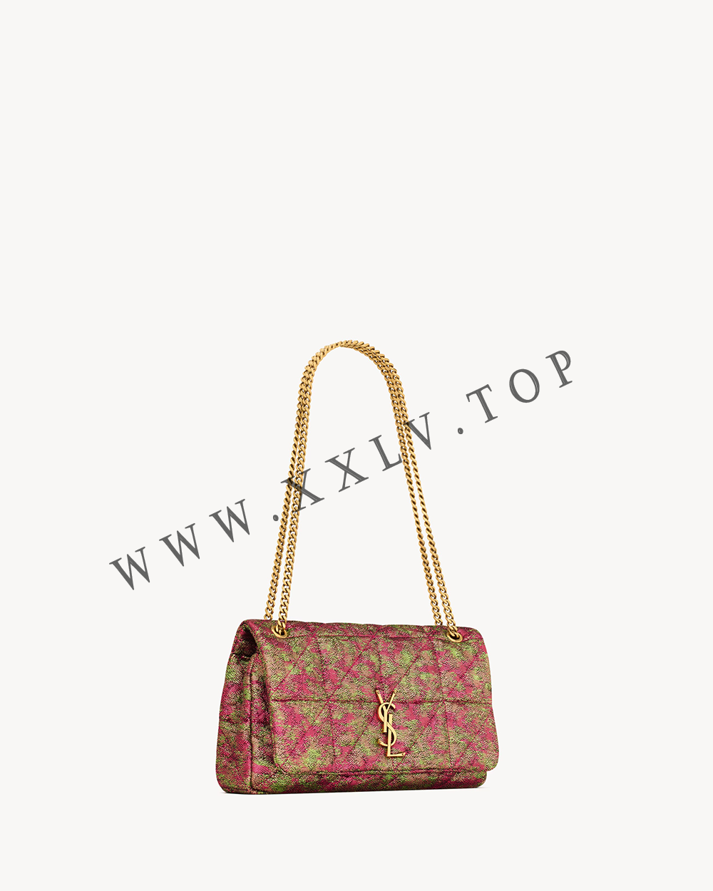 This lightweight and structured bag features an adjustable sliding chain strap that may be worn two ways.