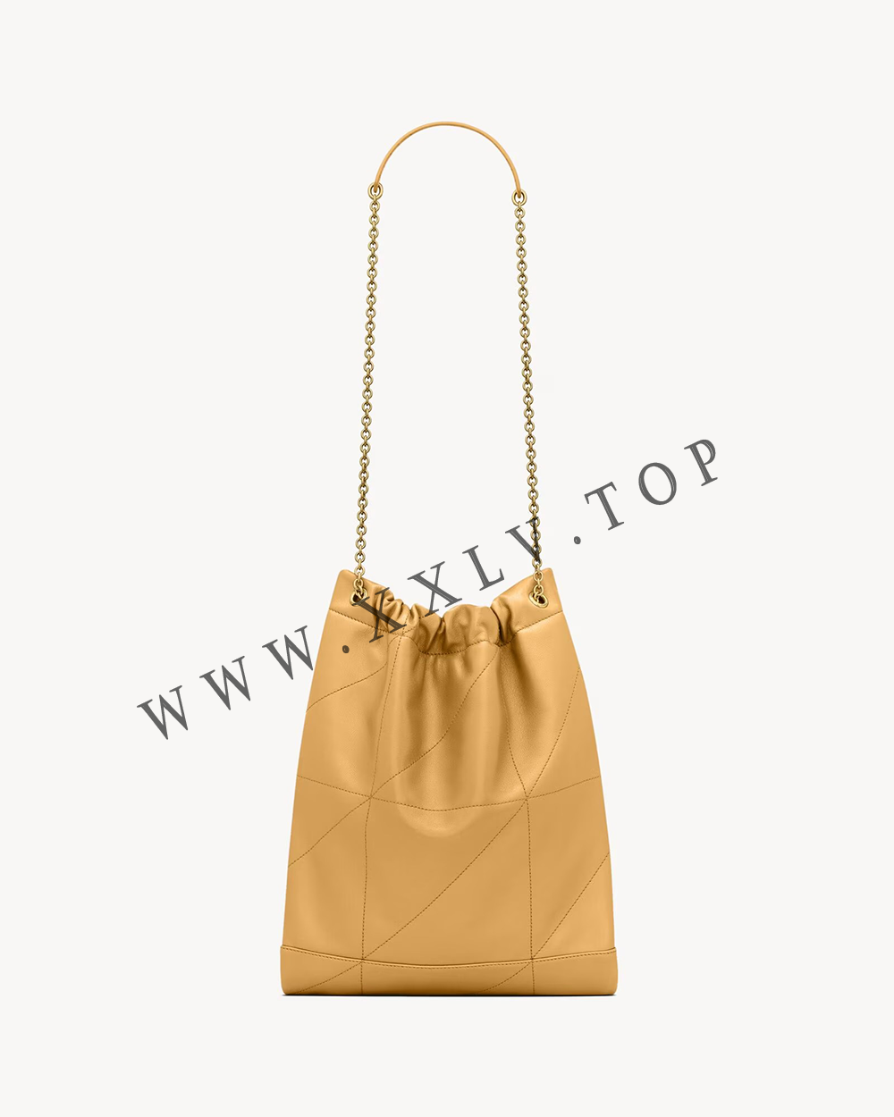 Lightweight and spacious, this adjustable bag features a drawstring chain strap for bespoke carry options.