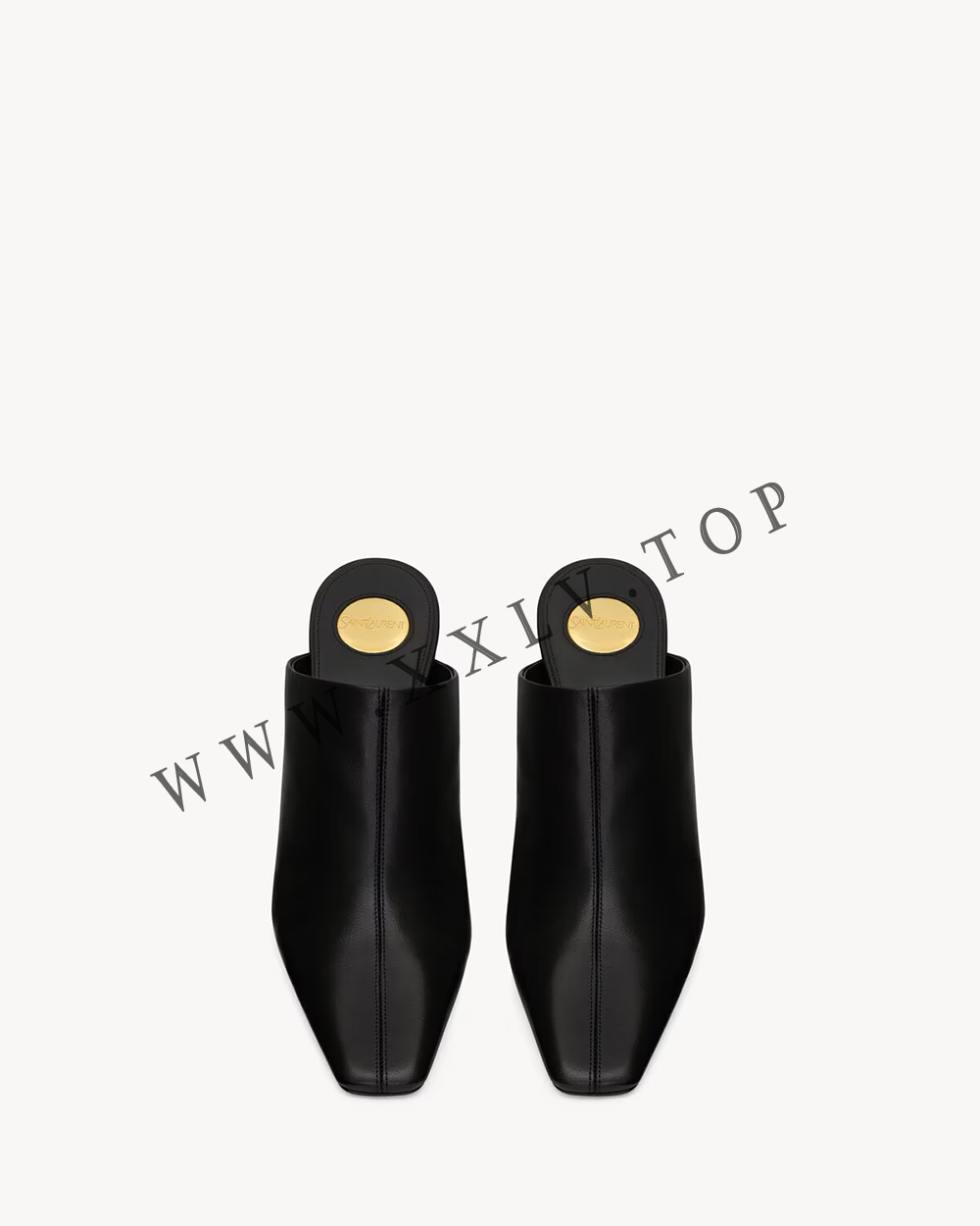 mule pumps with a square pointed toe and tapered block heel with inner CASSANDRE.