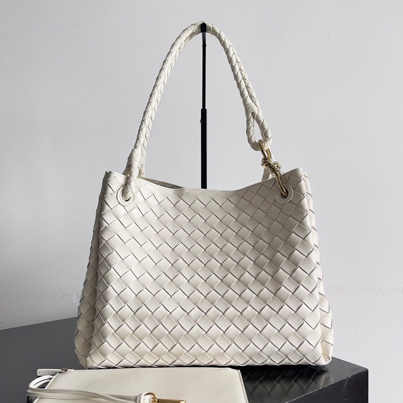 Shoulder bag in supple Intrecciato leather with signature knot detail.