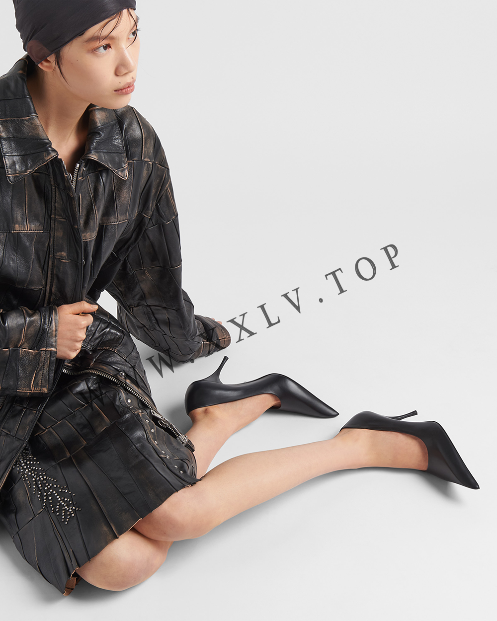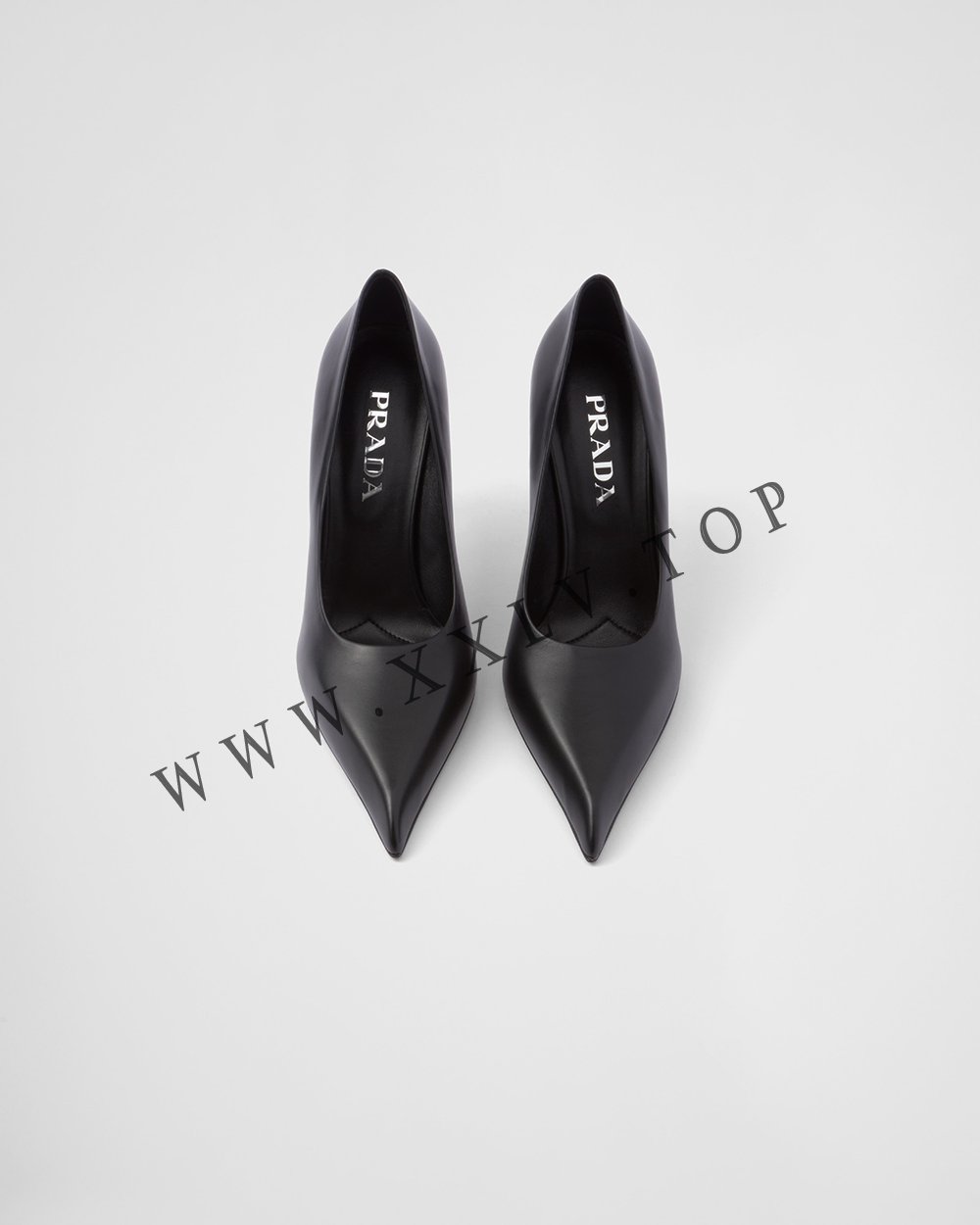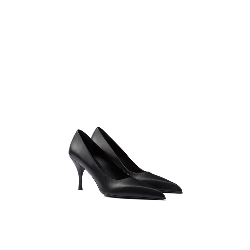 These leather pumps with a sophisticated, feminine design is a contemporary reinterpretation of a timeless silhouette. The style plays with bold, elongated lines that run from the pointy upper to the tapered heel. The refined simplicity of the shapes is enhanced by the lustrous finish of satin that enriches the shoe with a modern and sophisticated touch.