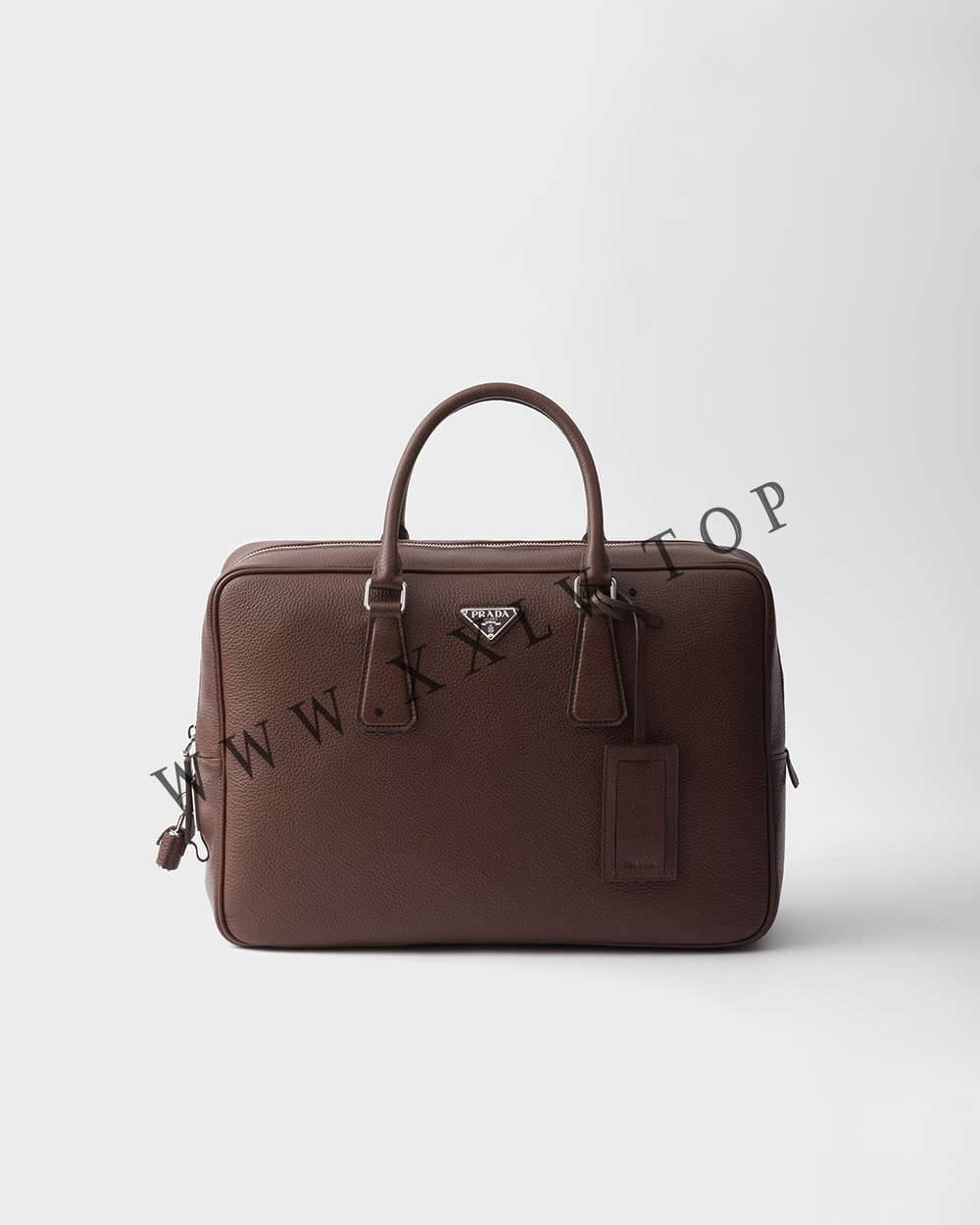 This work bag made of soft leather with a natural finish is characterized by its soft, versatile design. The functional silhouette is embellished with refined, classic details, while the enameled metal triangle logo completes the accessory with an iconic note.