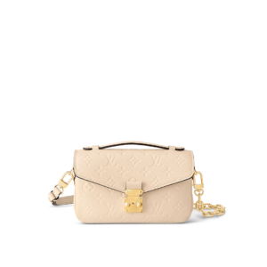 Made from embossed Monogram Empreinte leather, the Pochette Métis handbag blends signature House style and contemporary detailing. The on-trend East-West silhouette is highlighted by a heritage S-lock and removable short chain, both cast from gold-finish metal. With its well-organized interior and adjustable smart strap, this compact bag adapts perfectly to active lifestyles.