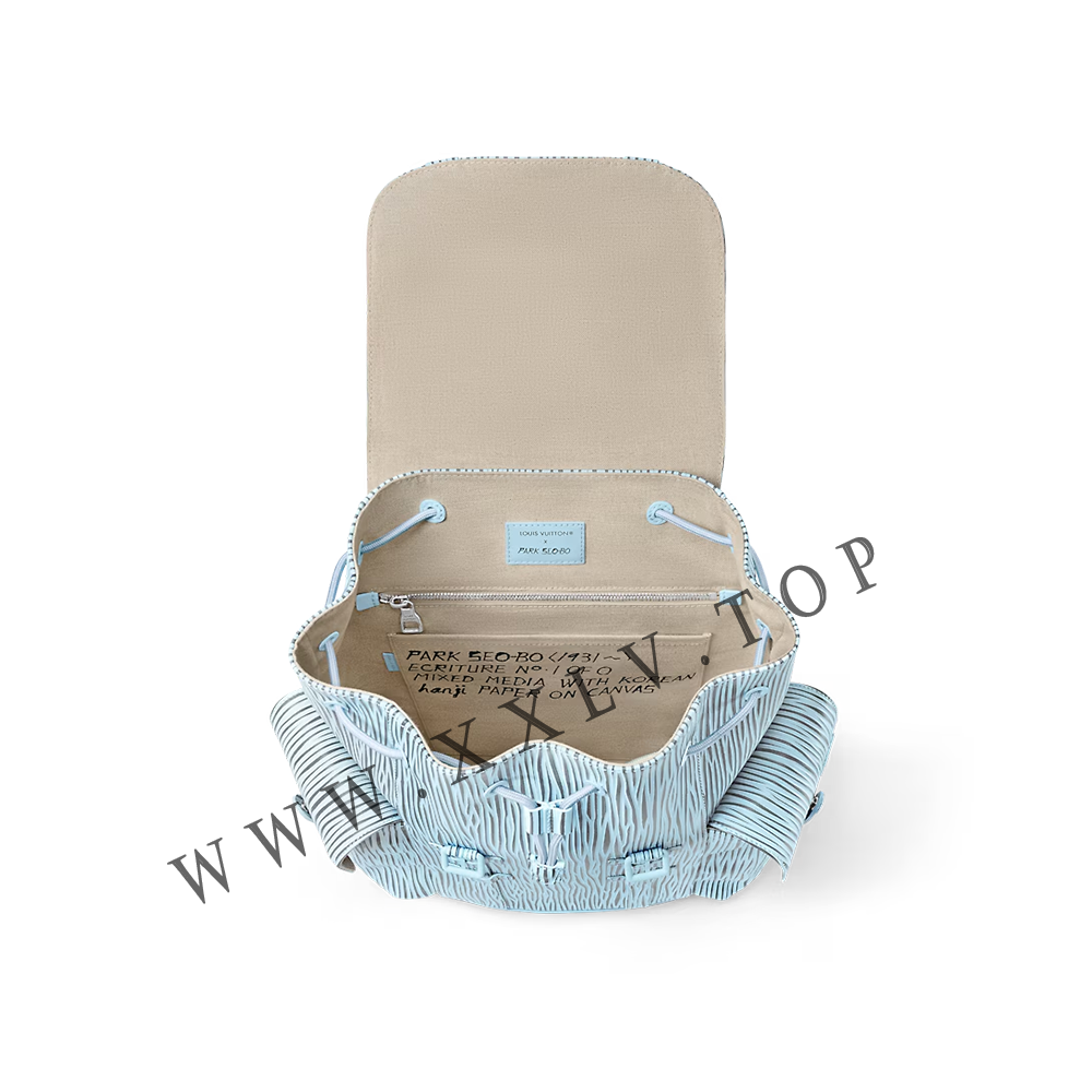 This Christopher MM backpack is part of the LV x Park Seo-Bo collection, a meticulous translation of Park Seo-Bo’s fine art legacy. Inspired by Seo-Bo’s artworks, the embossing of the Epi XL leather becomes vertical. The vibrant colorway also evokes Seo-Bo’s art, as does the smooth leather strip on the name tag.