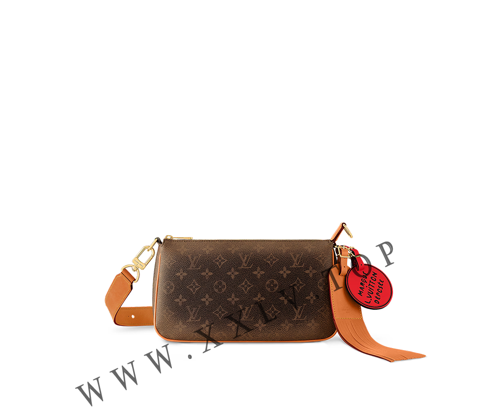 The Pochette Accessoire XL is made from Monogram Dust canvas, with a Monogram pattern seemingly weathered by time. This masculine reinterpretation of the 1990’s Louis Vuitton icon features a roomy zipped main compartment with a flat pocket. It boasts a decorative name tag with fringes and a red “Marque L.Vuitton Déposée” charm, both detachable.