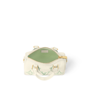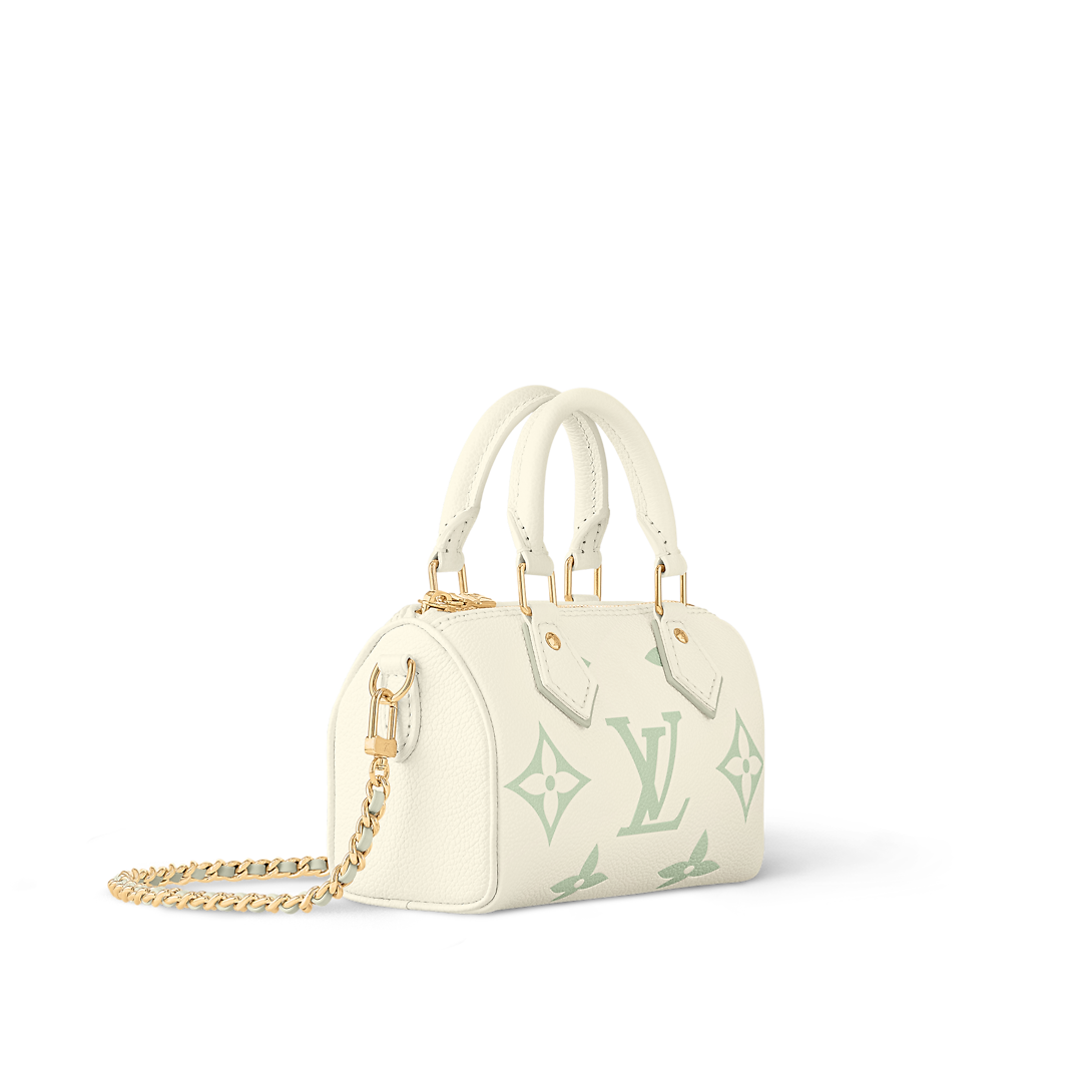 The Nano Speedy bag is revisited in supple, grained Monogram Empreinte leather in a fresh, bicolor palette that highlights the embossed Monogram pattern. This mini replica of the iconic Speedy comes with two handles and a removable, gold-tone chain, which is interlaced with leather, offering a refined look and different carry options.