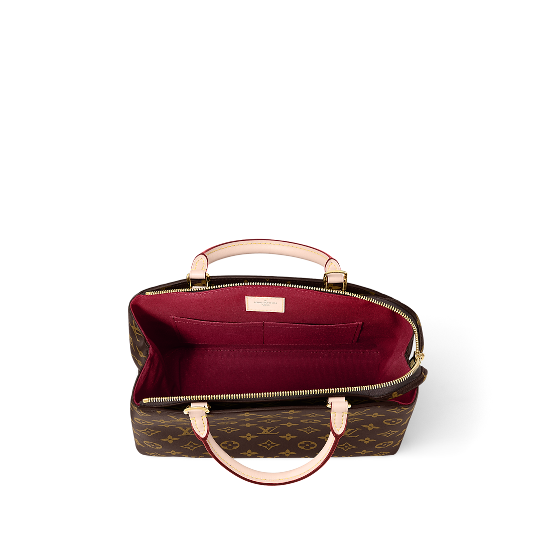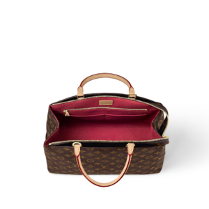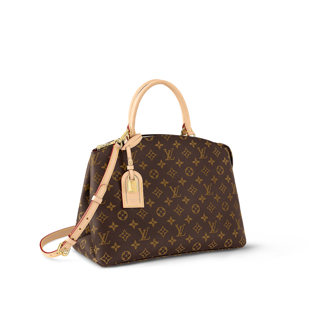 Inspired by the iconic Lockit from 2011 and the shape of the Montaigne launched in 2014, the new Grand Palais tote is as versatile as it is feminine. Made from Monogram canvas with natural-leather trim, its interior features a vivid red lining and a Louis Vuitton patch. The removable strap and top handles give carry options.