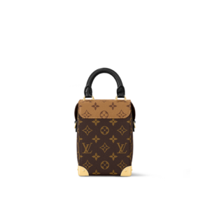 The Camera Box handbag combines all the Petite Malle’s signature details – S-lock, metallic corners, rivets, and a mix of Monogram and Monogram Reverse are all here – but on a modern shape. A thin gold-color chain brings a feminine touch to the bag while the pivoting top-handle adds a comfortable carry option.
