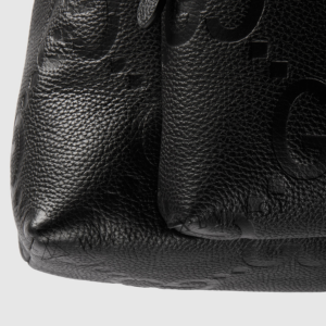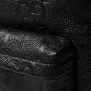 The jumbo GG design continues for Cruise 2025 with a new grainy texture. A reinterpretation of Guccio Gucci’s initials, the motif is an evergreen of the House that appears prominently in maxi dimensions for an eye-catching logo feel. This backpack in the emblematic leather features multiple pockets and an additional D-ring to attach items.