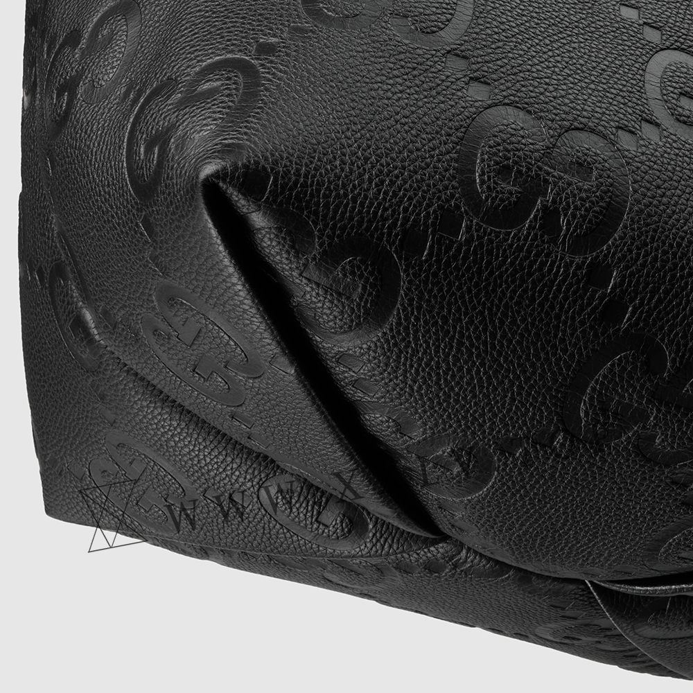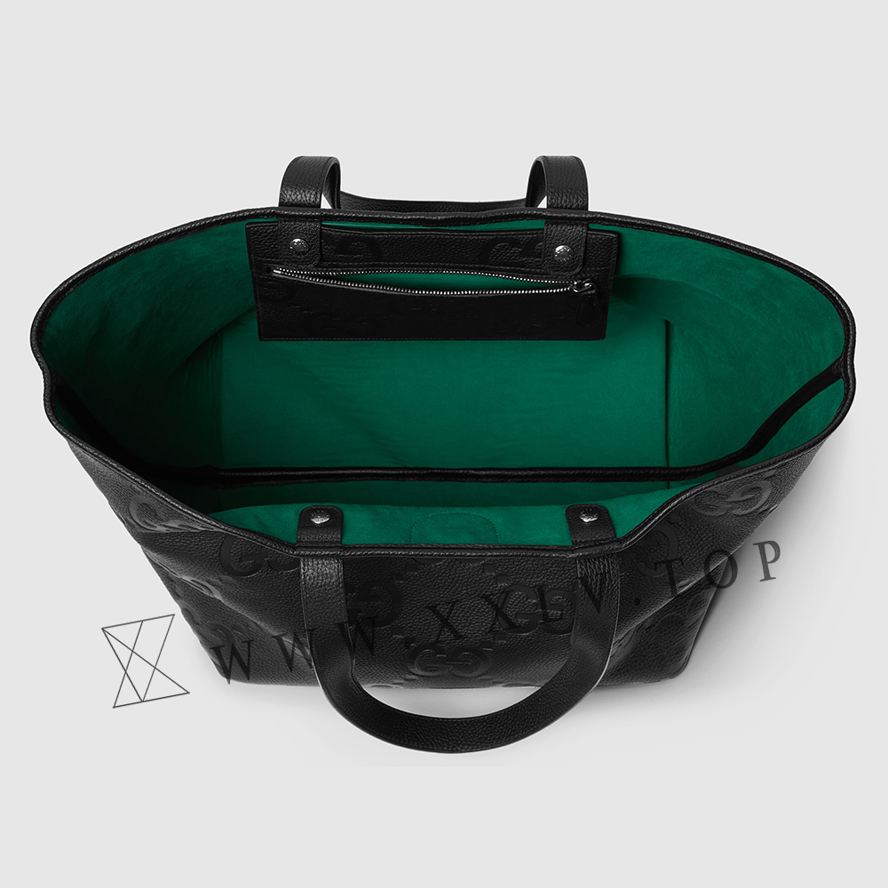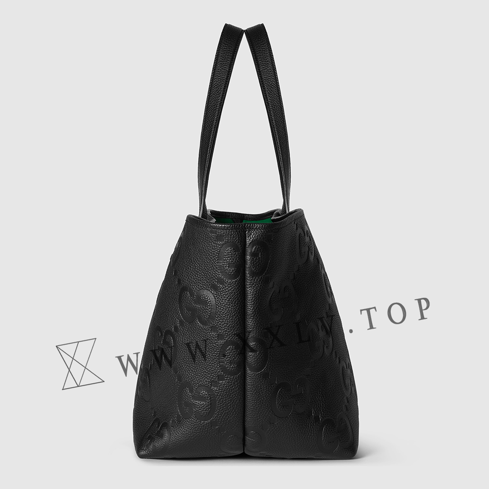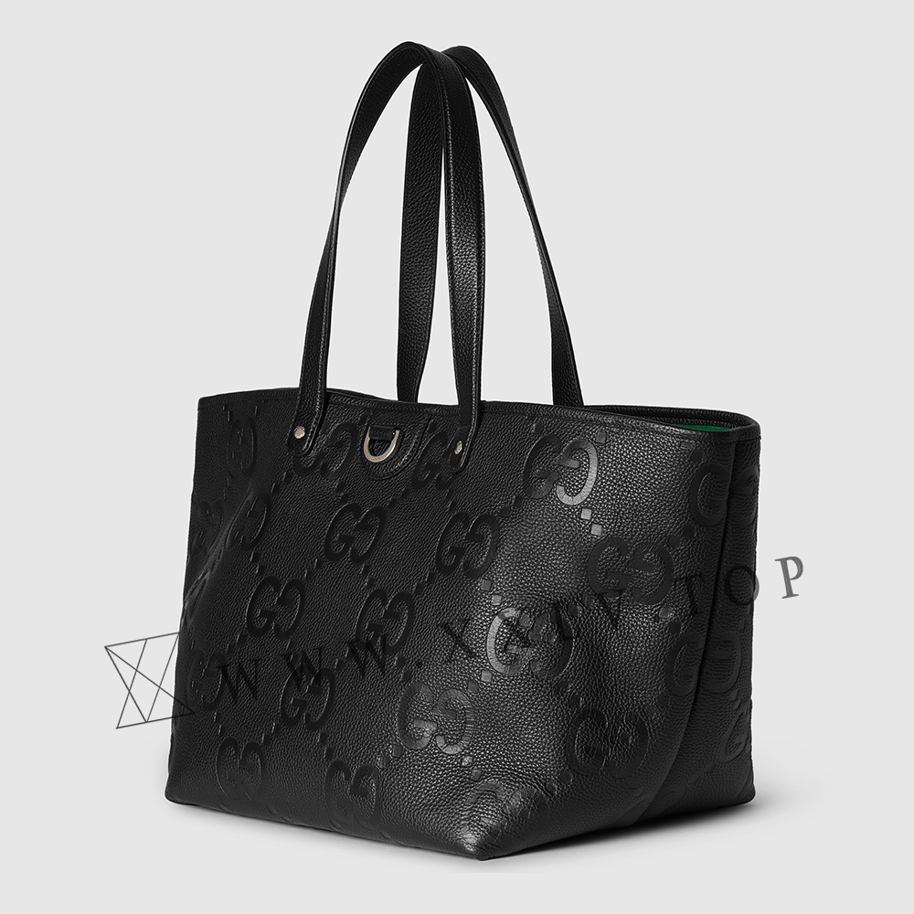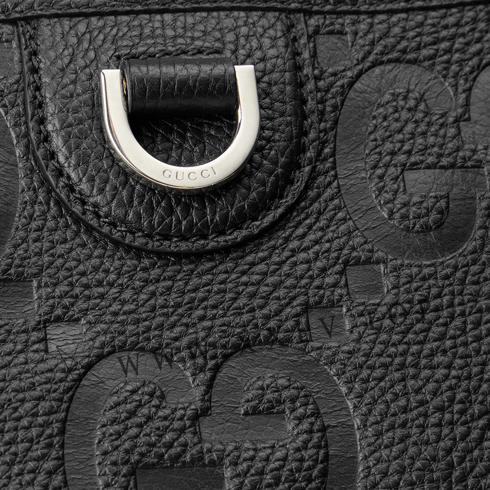 The jumbo GG design continues for Cruise 2025 with a new grainy texture. A reinterpretation of Guccio Gucci’s initials, the motif is an evergreen of the House that appears prominently in maxi dimensions for an eye-catching logo feel. This tote bag in the emblematic leather features an additional D-ring for detachable items.