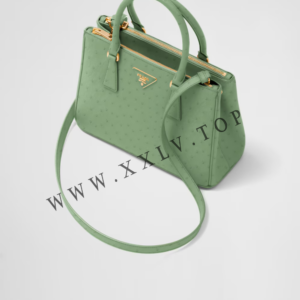 Elegance and delicacy characterize fine ostrich leather with its distinctive natural polka-dot texture with sophisticated allure. The precious yet very durable leather worked by hand defines this accessory. Production of the Prada Galleria bag, composed of 83 pieces, is an authentic fusion between industrial precision and the refined accuracy of craftsmanship that can only be performed by hand. The design is clean and elegant yet innately pragmatic, an aesthetic language blending form and function that combines history and modernity. Originating the definition of “timeless”, the Galleria bag has become a hallmark of Prada’s identity in the twenty-first century.