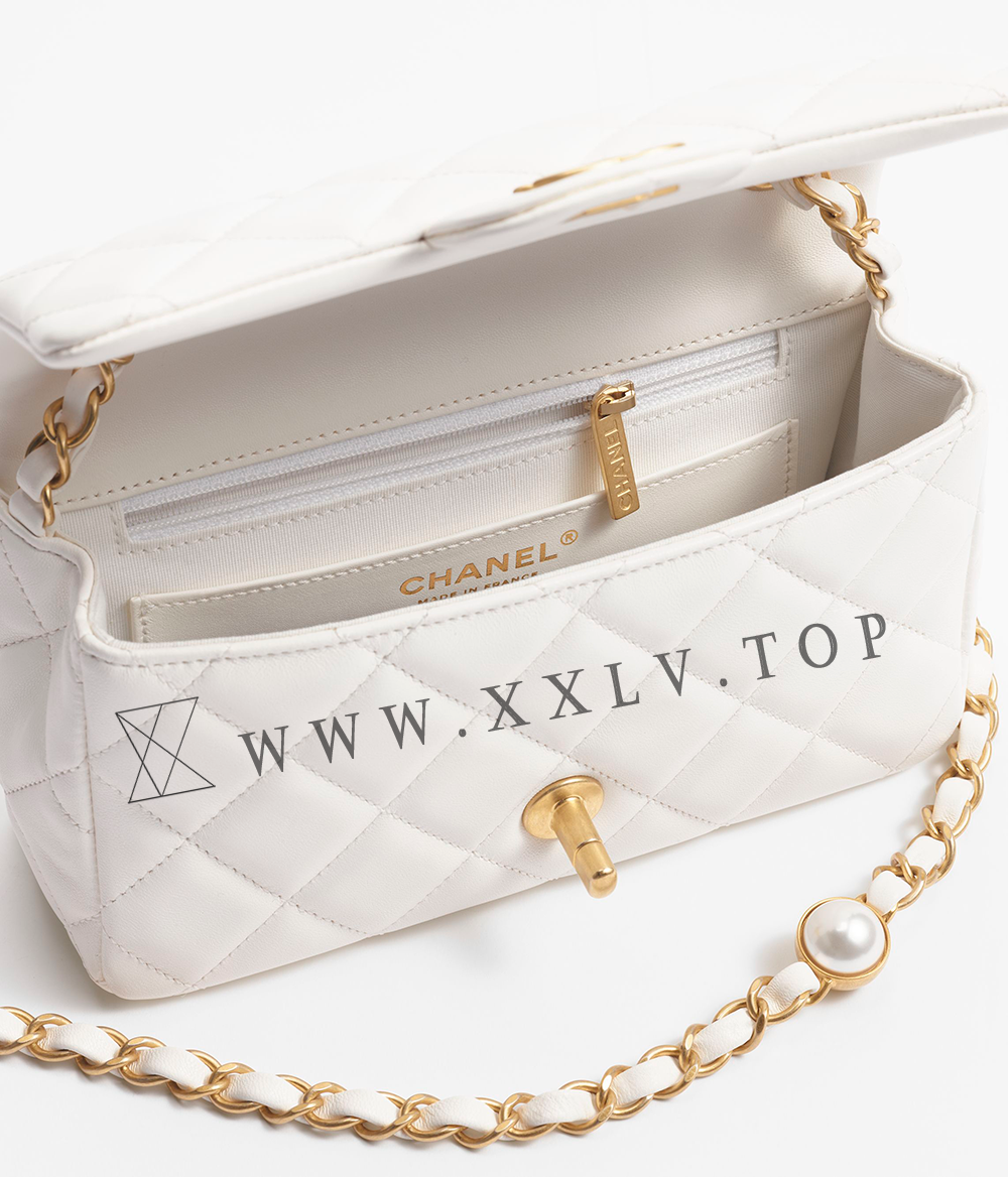 Shiny Lambskin, Imitation Pearls & Gold-Tone Metal