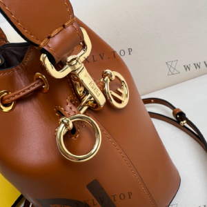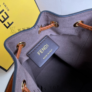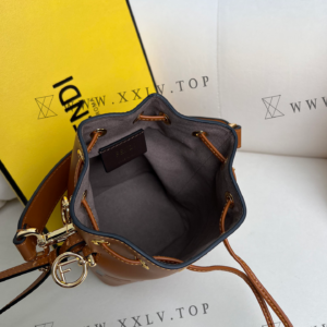 Iconic small Mon Tresor bucket bag with new proportions perfect for always keeping your everyday essentials close at hand. Made of fabric with brown jacquard FF motif.
