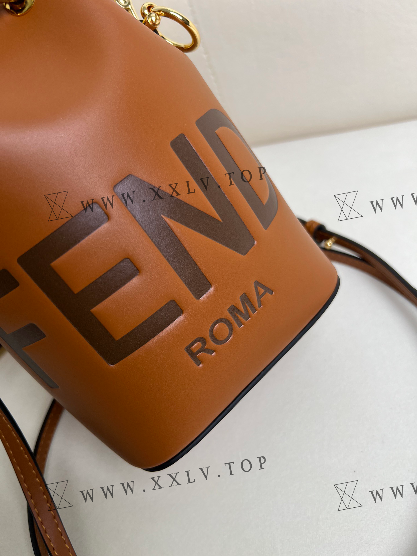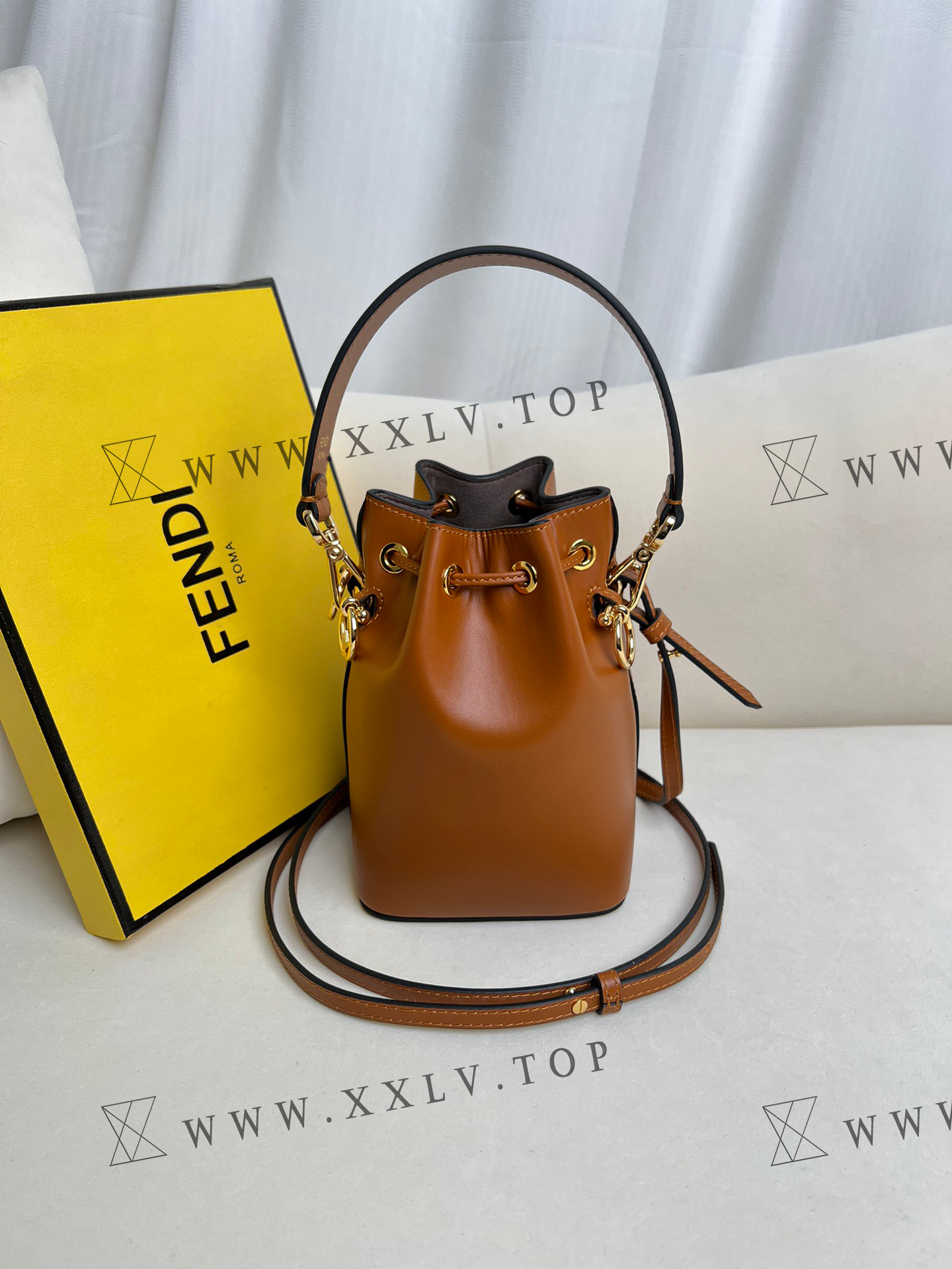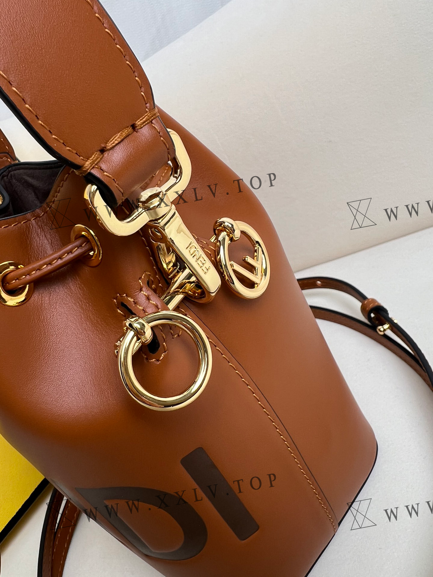 Iconic small Mon Tresor bucket bag with new proportions perfect for always keeping your everyday essentials close at hand. Made of fabric with brown jacquard FF motif.