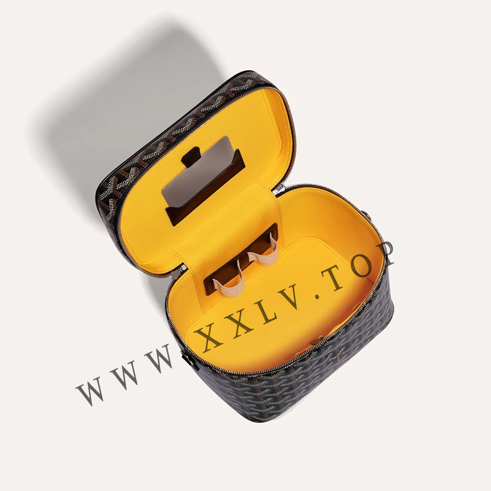 The interior of the Muse vanity case is ingenious with its sliding elastic strap system that keeps bottles and other cosmetics and toiletries safe and secure. With an additional strap it can be worn in several different ways: carried, over the shoulder and across the chest.