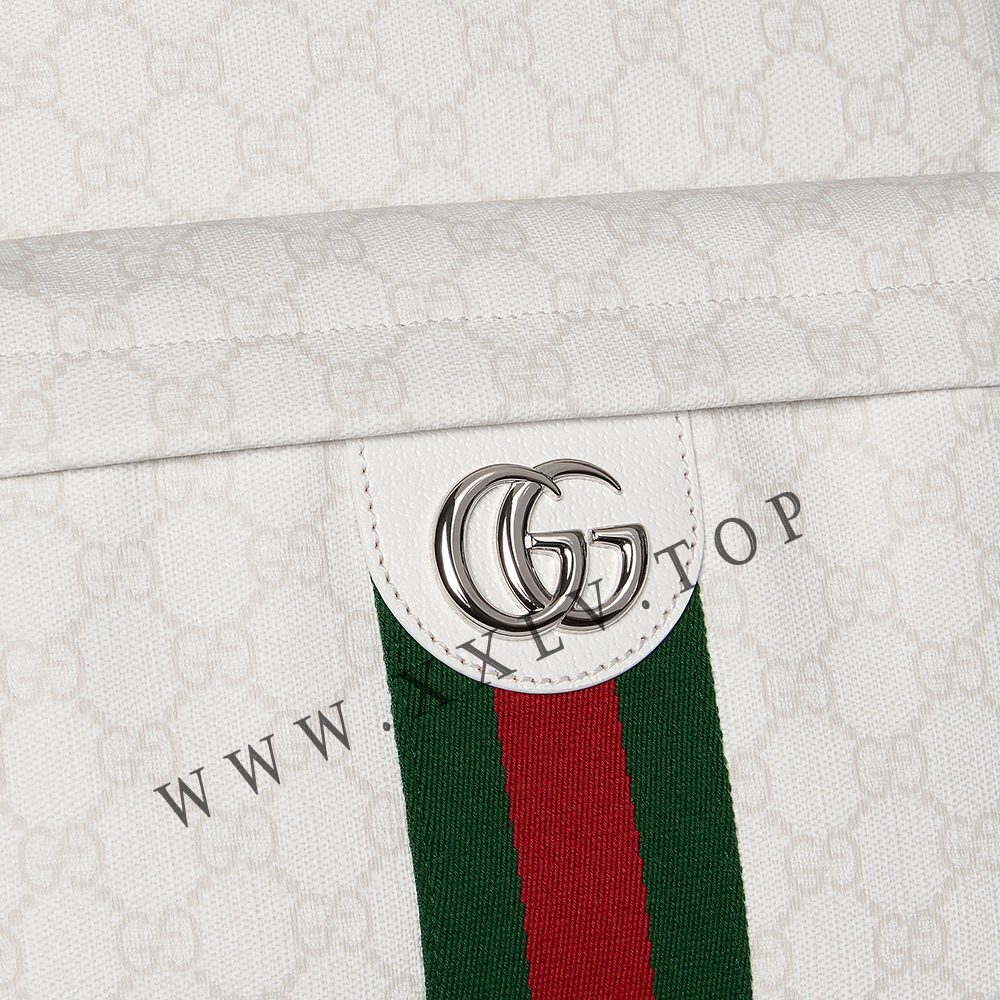 Ophidia in the white palette offers signature silhouettes and new functions, crafted with a sophisticated touch. This backpack has been crafted from soft GG Supreme, revealing a Double G and a green and red Web detail.