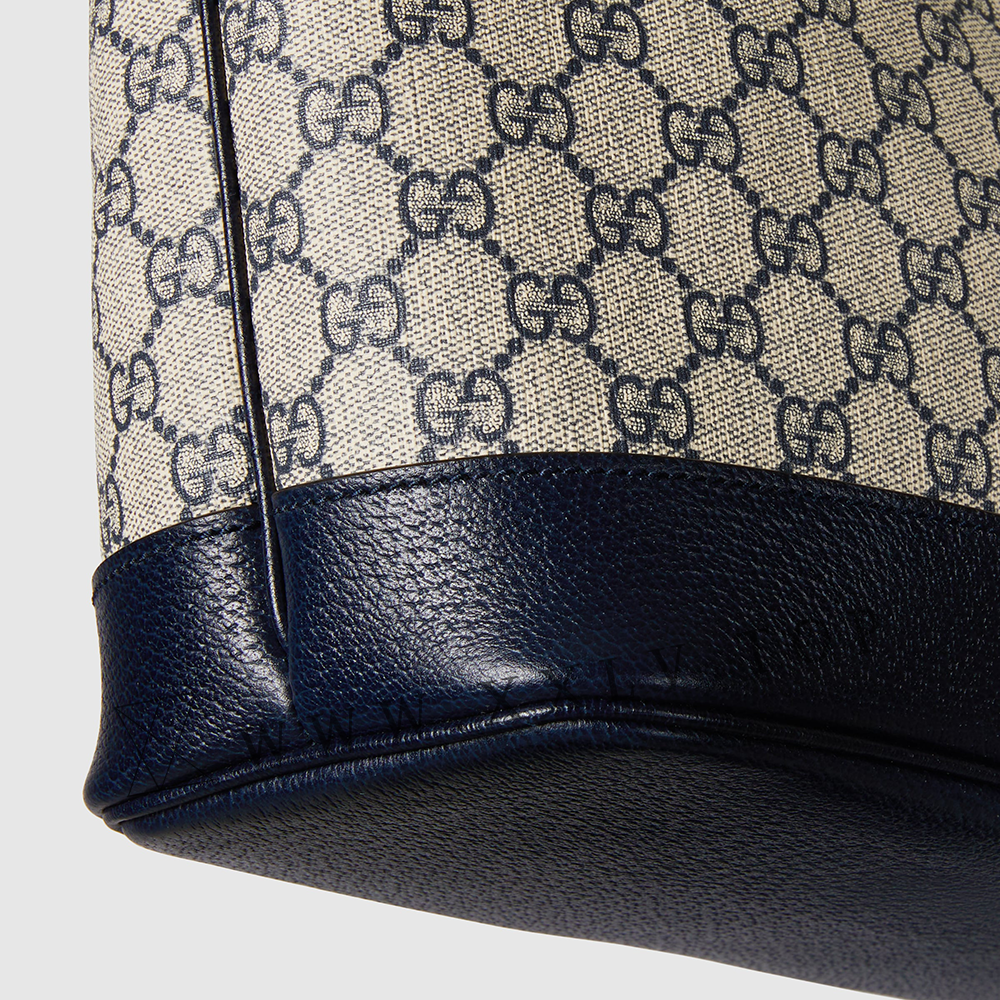 The Ophidia line is further elevated through new sizes and styles, including variations with top handles as well as shoulder straps, allowing for versatile wear. The signature Double G hardware completes this beige and blue GG Supreme design.