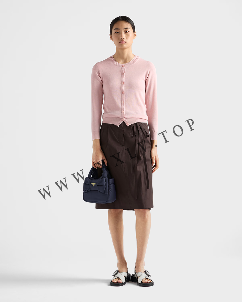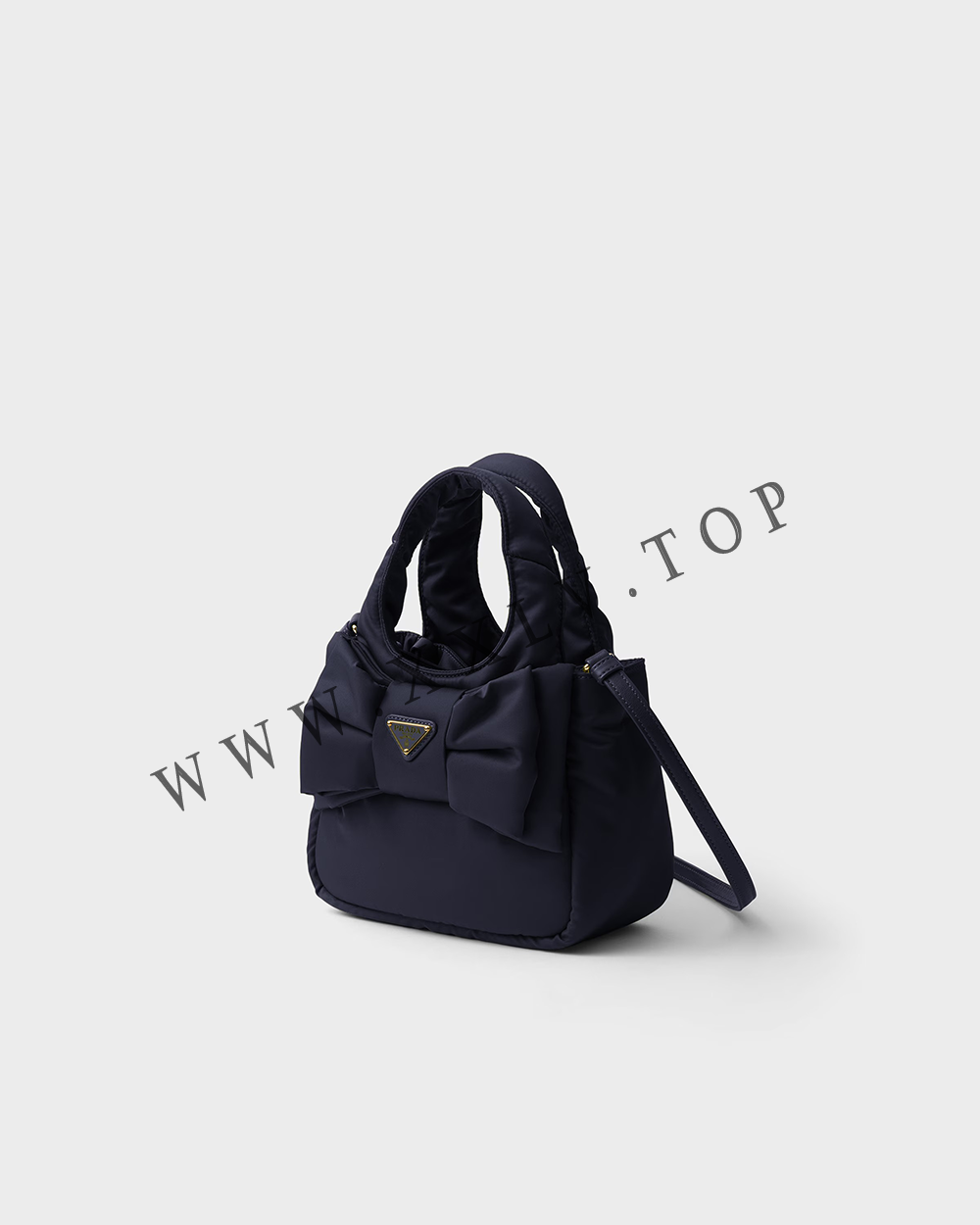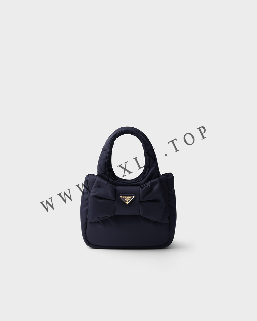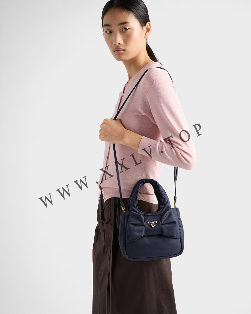 With a design based on subtle contrasts and iconic details, this padded Re-Nylon bag expresses a romantic yet unconventional spirit. The soft silhouette is animated by an oversized bow with a minimalist design that suggests new, contemporary femininity.
