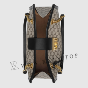 A shoulder bag with a strap that secures with a key lock closure pulled straight from the archives. The structured shape is crafted from beige and ebony GG Supreme canvas and completed with black leather details. First used in the 1970s, the GG logo was an evolution of the original Gucci rhombi design from the 1930s, and from then it’s been an established symbol of the House’s heritage.