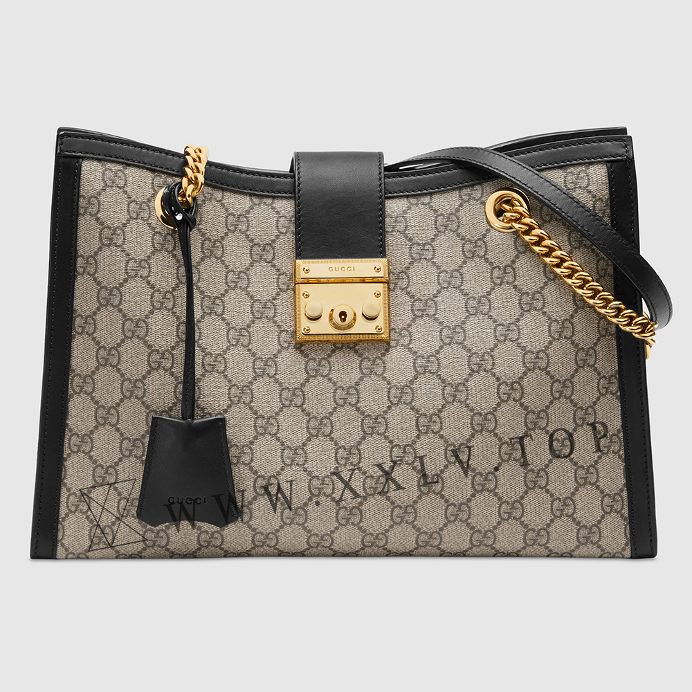A shoulder bag with a strap that secures with a key lock closure pulled straight from the archives. The structured shape is crafted from beige and ebony GG Supreme canvas and completed with black leather details. First used in the 1970s, the GG logo was an evolution of the original Gucci rhombi design from the 1930s, and from then it’s been an established symbol of the House’s heritage.