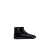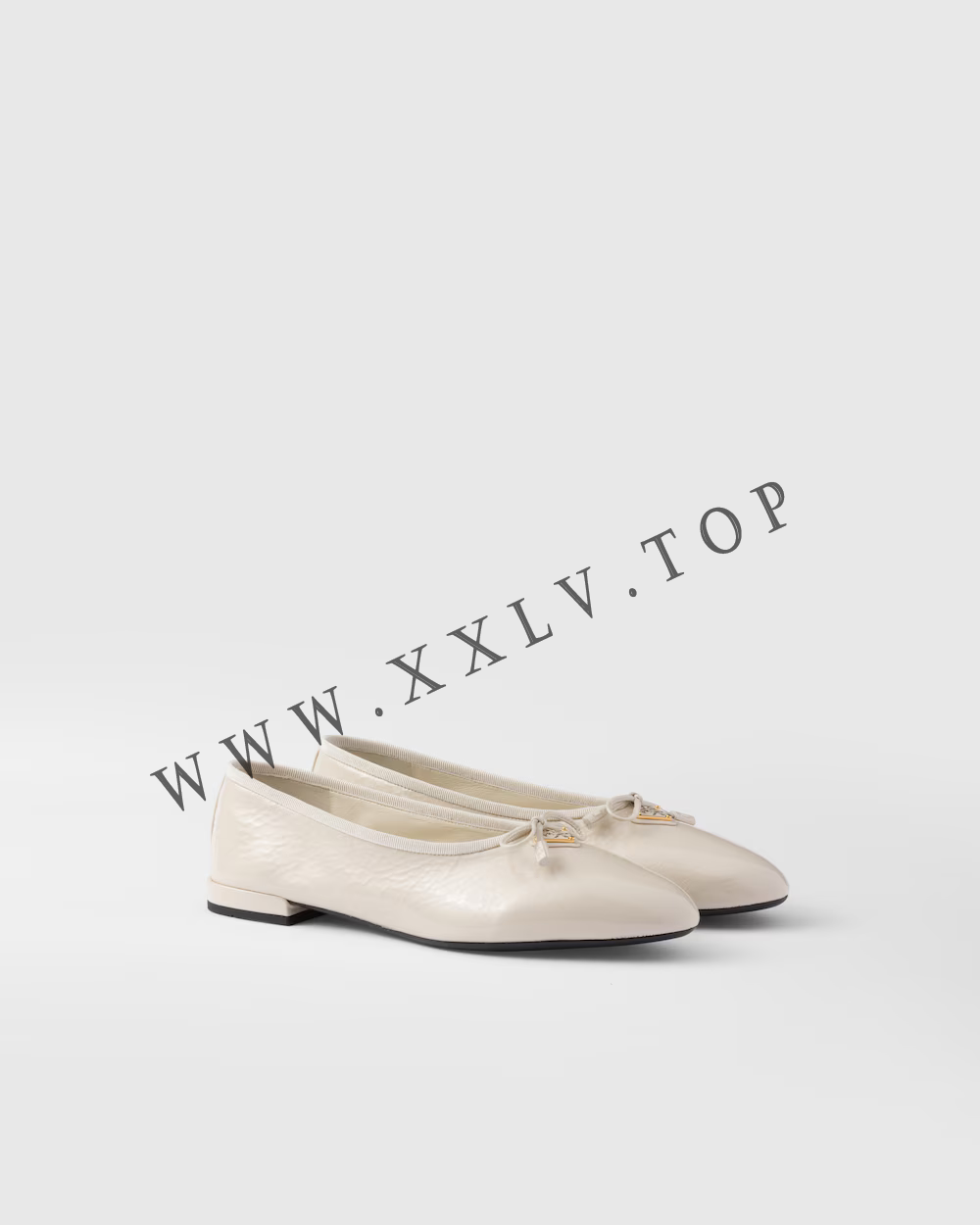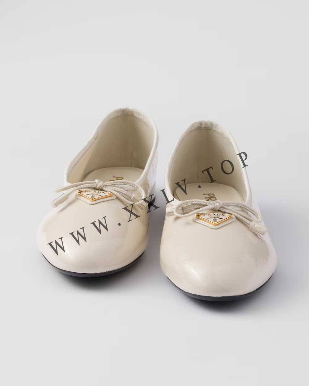 These patent leather ballerinas reinterpret a timeless classic with a contemporary tapered silhouette enriched with the iconic triangle logo.