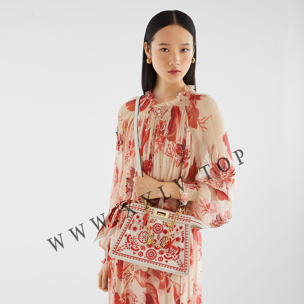 Iconic small Peekaboo ISeeU bag, the epitome of Fendi craftsmanship and creativity. A timeless icon, the Peekaboo was created in 2009. Like the children’s game it takes its name from, peek-a-boo, the bag plays with the beauty showcased on the outside and that concealed on the inside.
