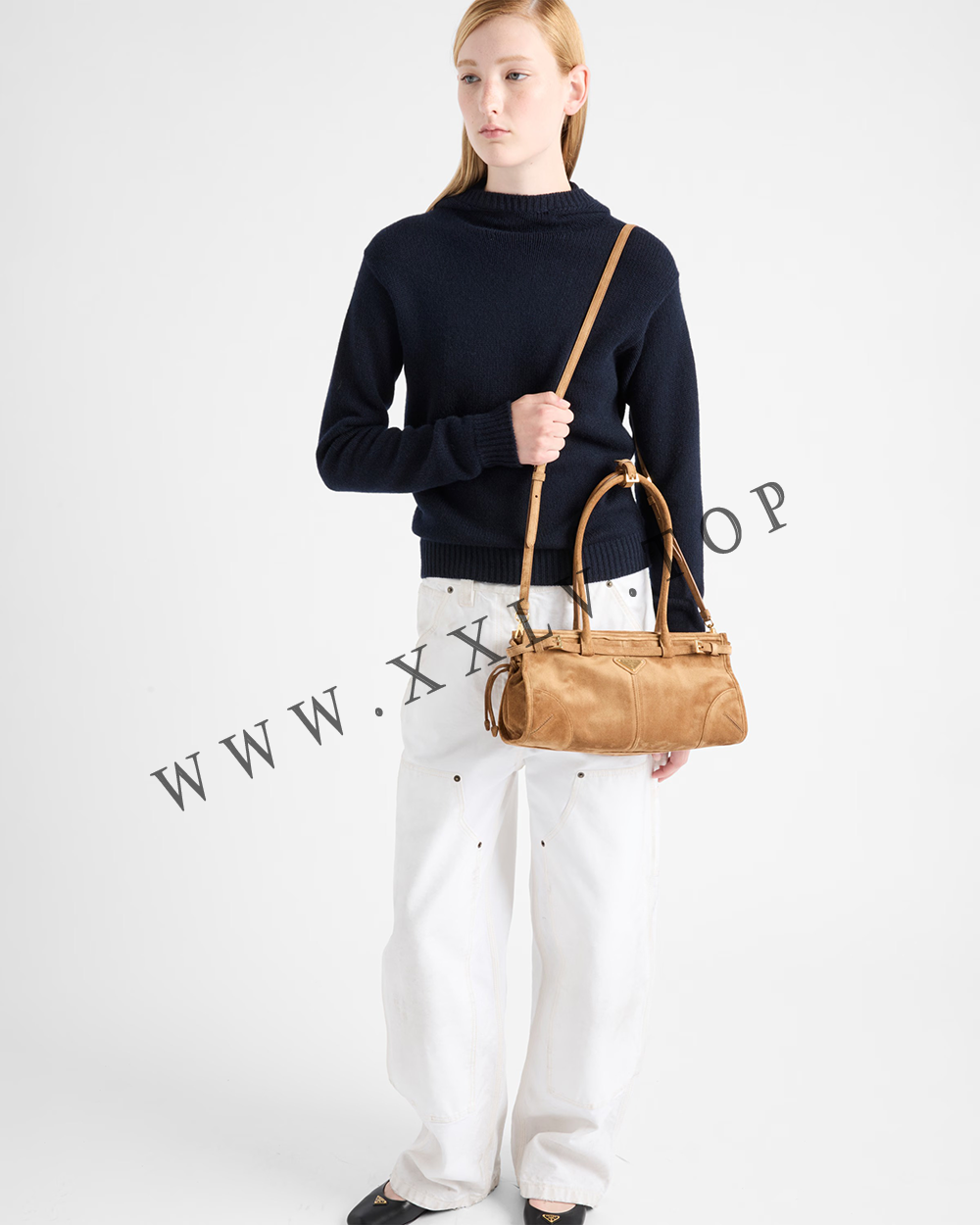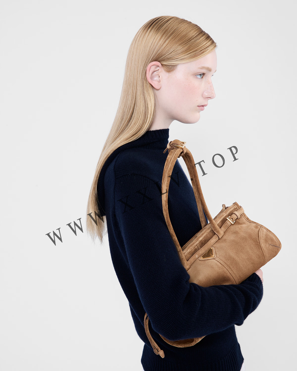 Pragmatic, contemporary elegance defines this suede handbag. The versatile design is enhanced by elegant, flattering straps that enhance the refined simplicity of the style.