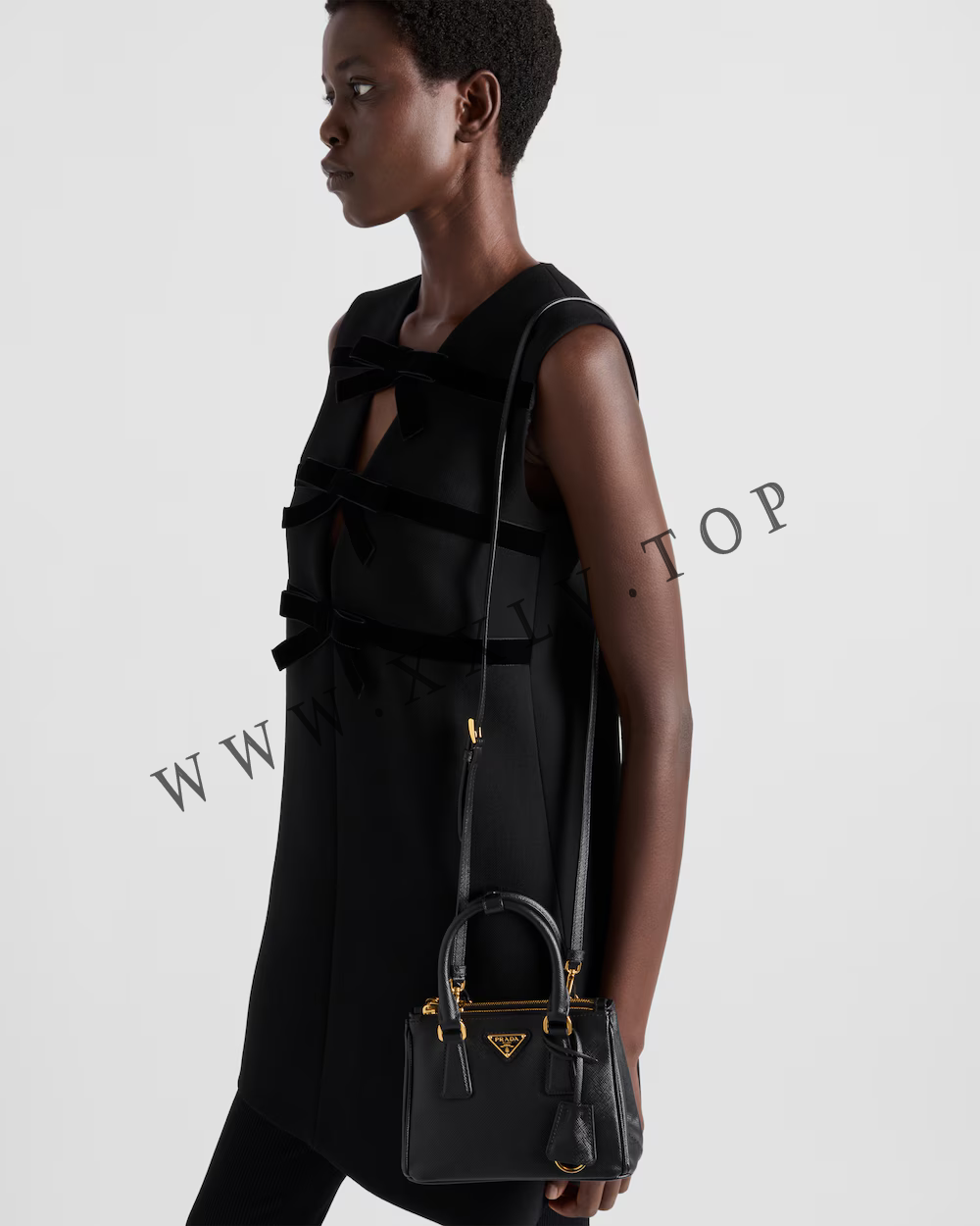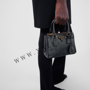 The elegant and versatile Prada Galleria bag blends industrial precision and refined, meticulous craft in a clean, sophisticated leather design. The accessory, presented in the micro version, is made of iconic Saffiano leather that was patented by Mario Prada and features a crosshatch texture and waxed finish.