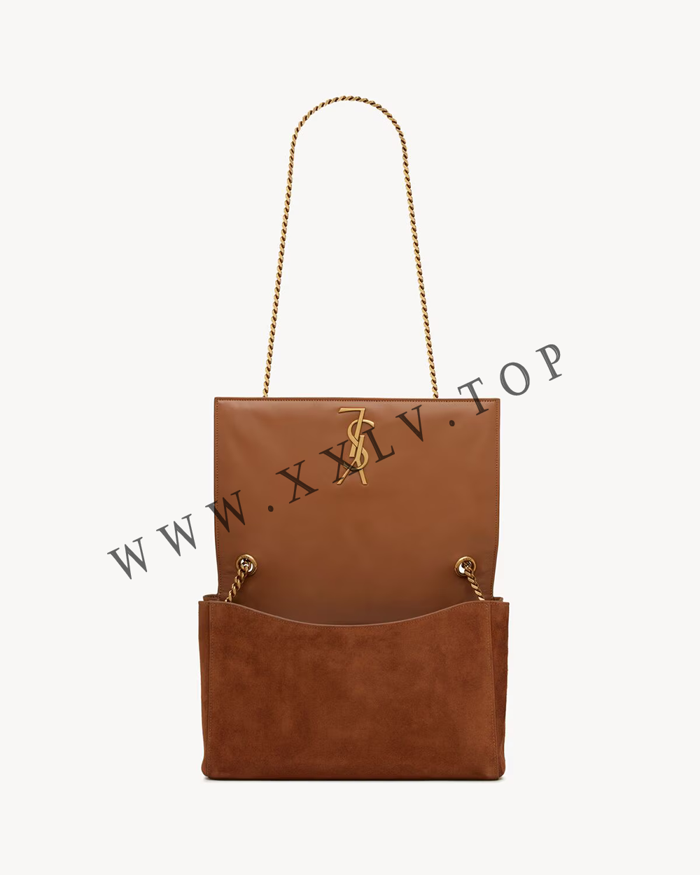SUPPLE REVERSIBLE BAG IN SUEDE, FEATURING THE CASSANDRE AND sliding chain.