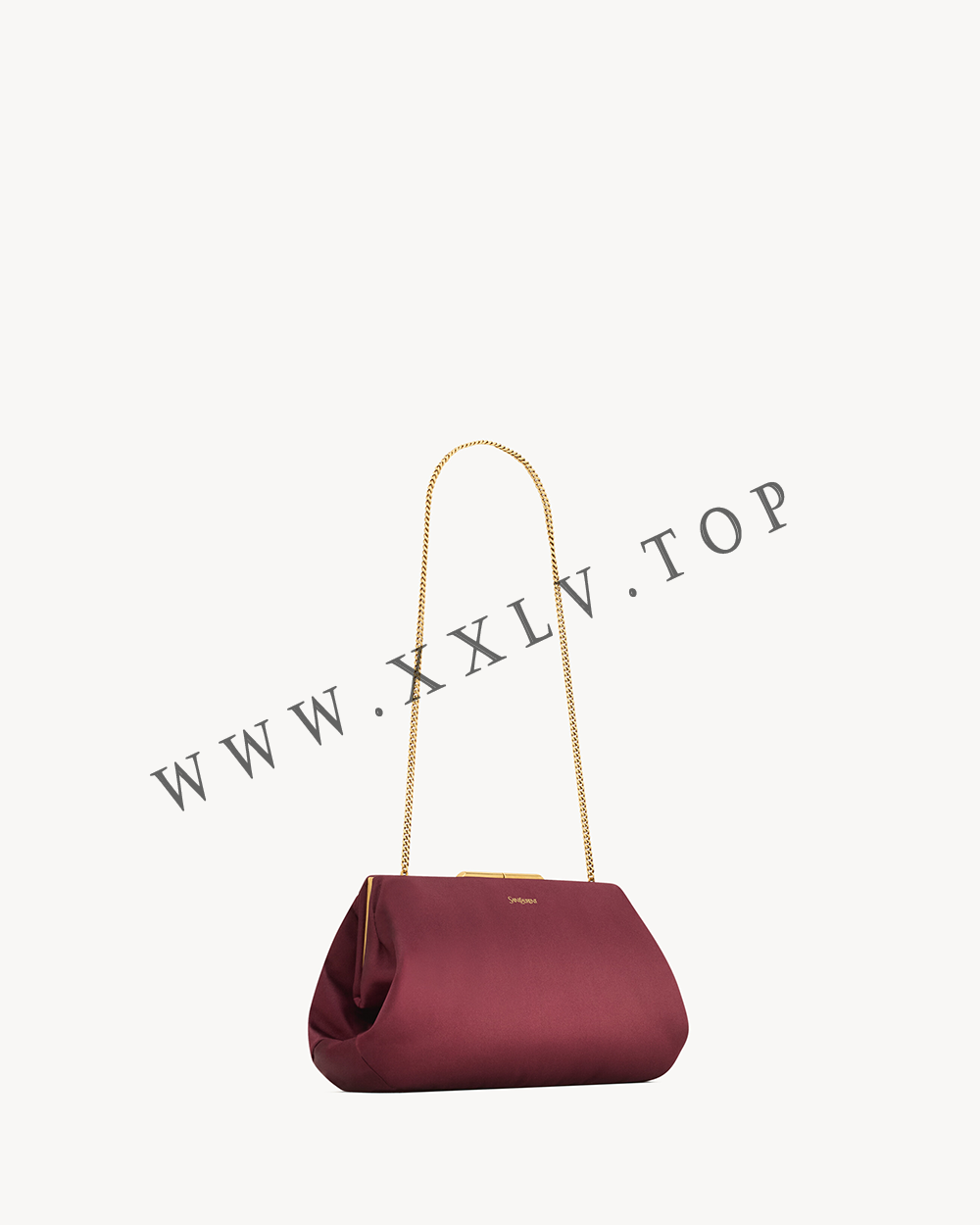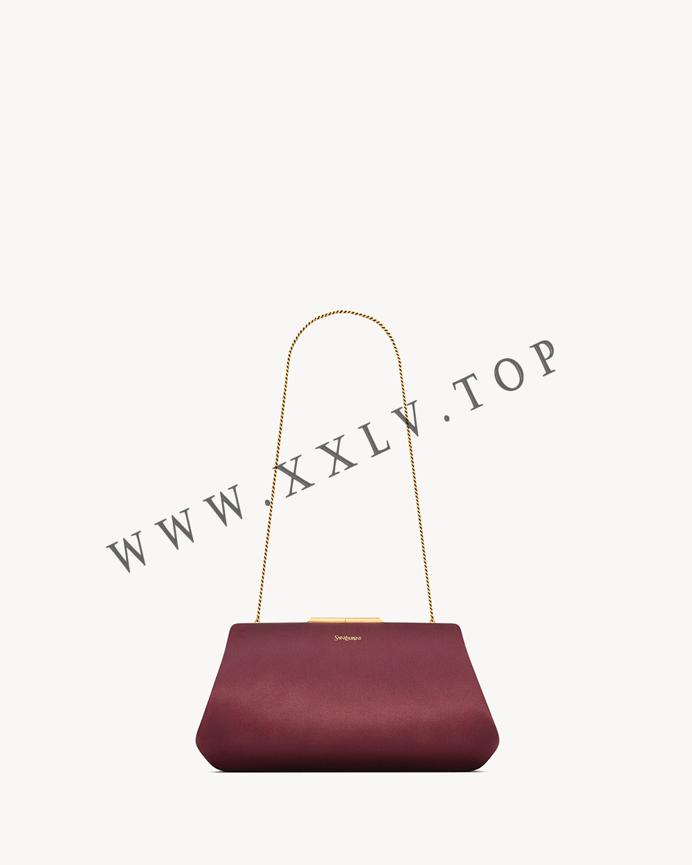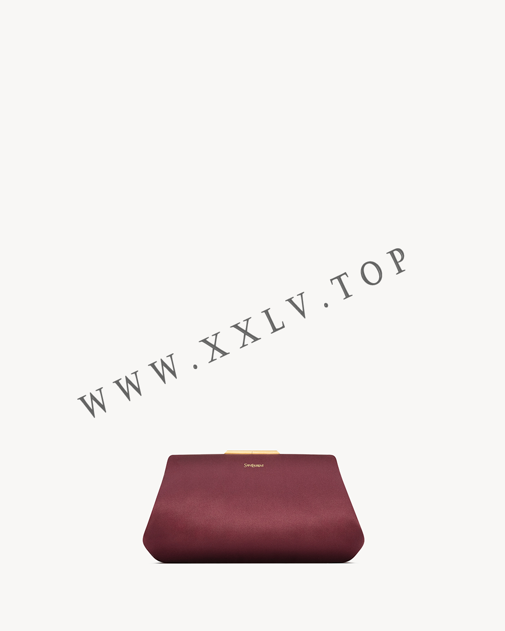 small pouch in satin with tonal satin lining, featuring a SAINT LAURENT engraved clasp.