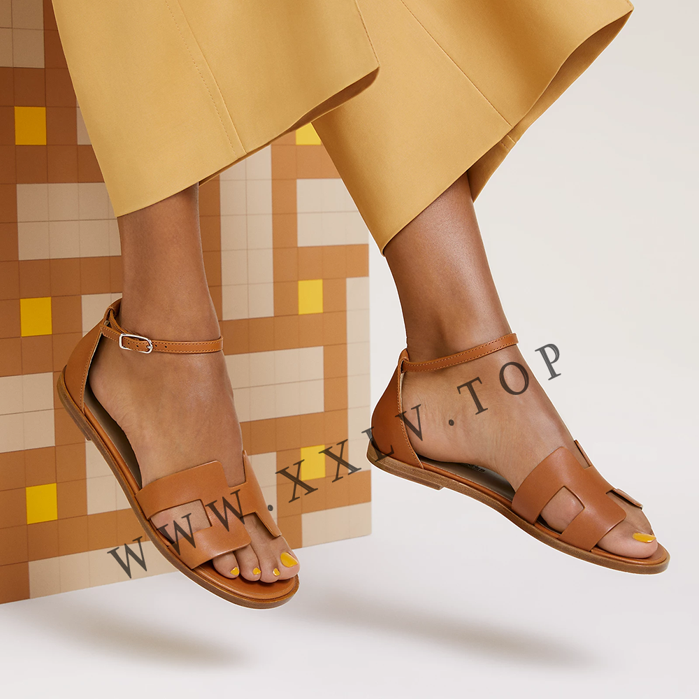 Sandal in Heritage calfskin with iconic “H” cut-out detail and adjustable ankle strap.